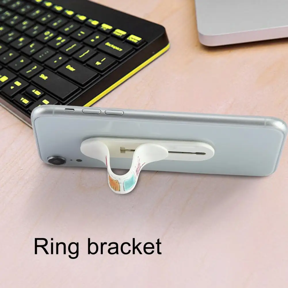 Портативный мультяшный U-образный держатель для кольца на палец, ручка, милая подставка с мультяшными животными и кошками с задней наклейкой для рабочего стола