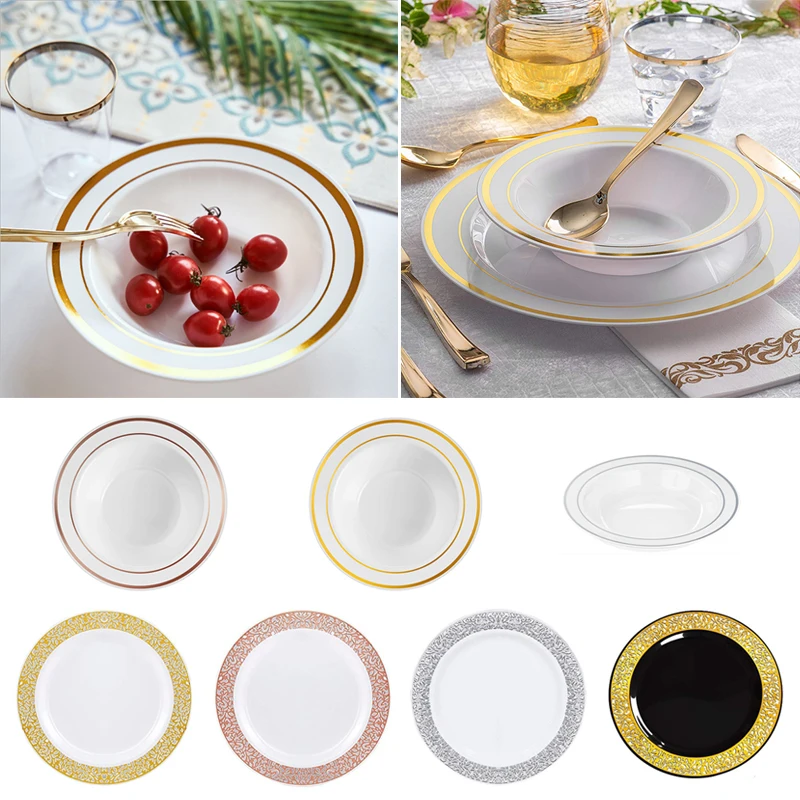 Пластиковые миски, одноразовая посуда, Глубокая тарелка, обеденные тарелки для пикника, день рождения, столовые приборы, миска для супа и соуса