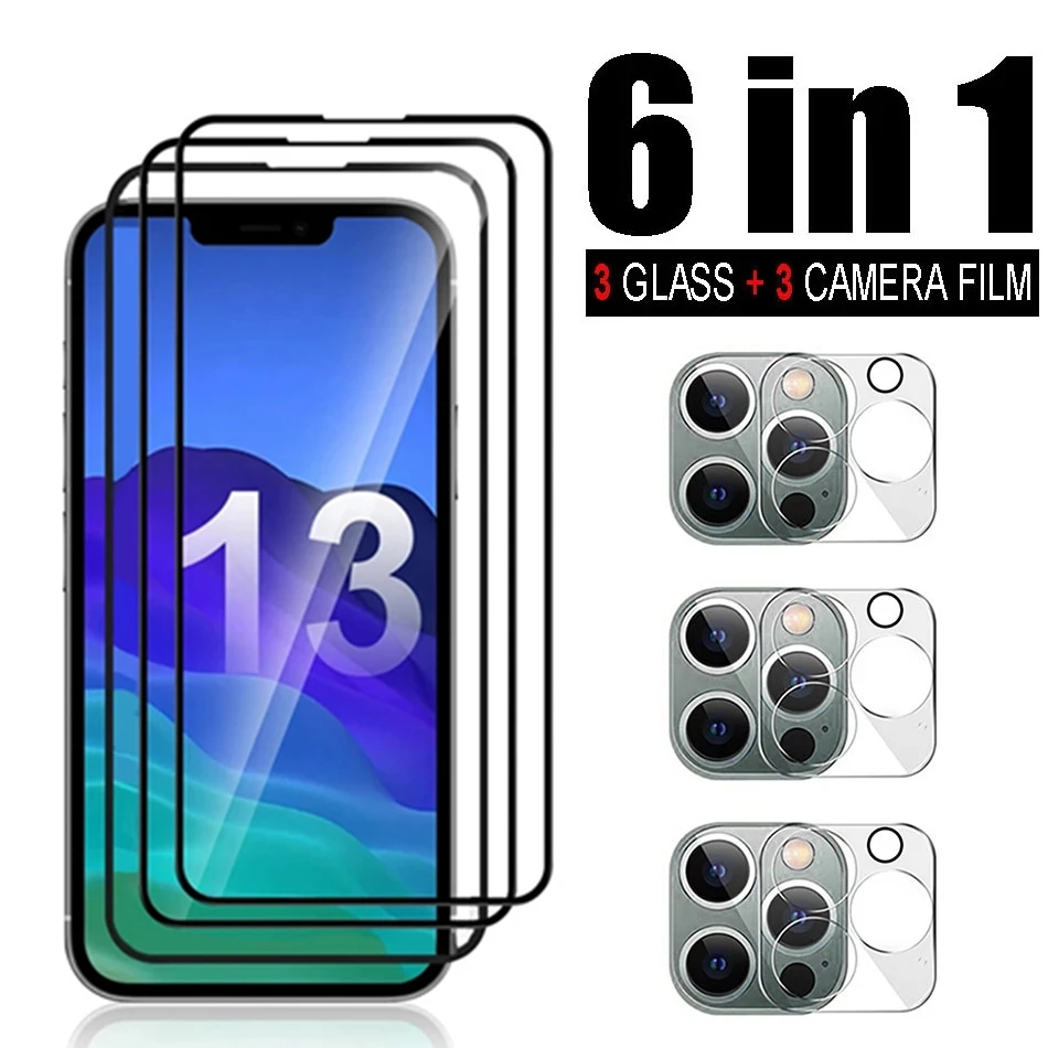 6 в 1 закаленное стекло для iPhone 13 Pro Max, защита экрана, полное покрытие, стеклянная пленка для объектива камеры, 13 серий, полноразмерное защитное стекло
