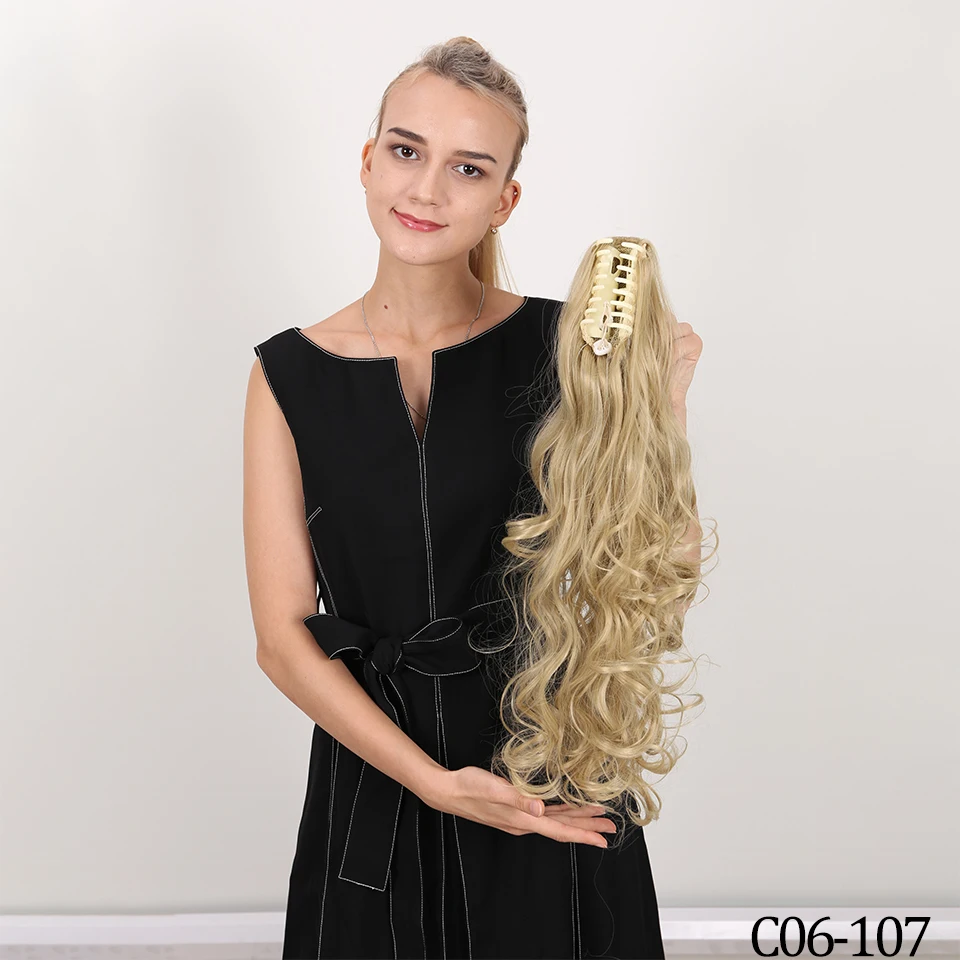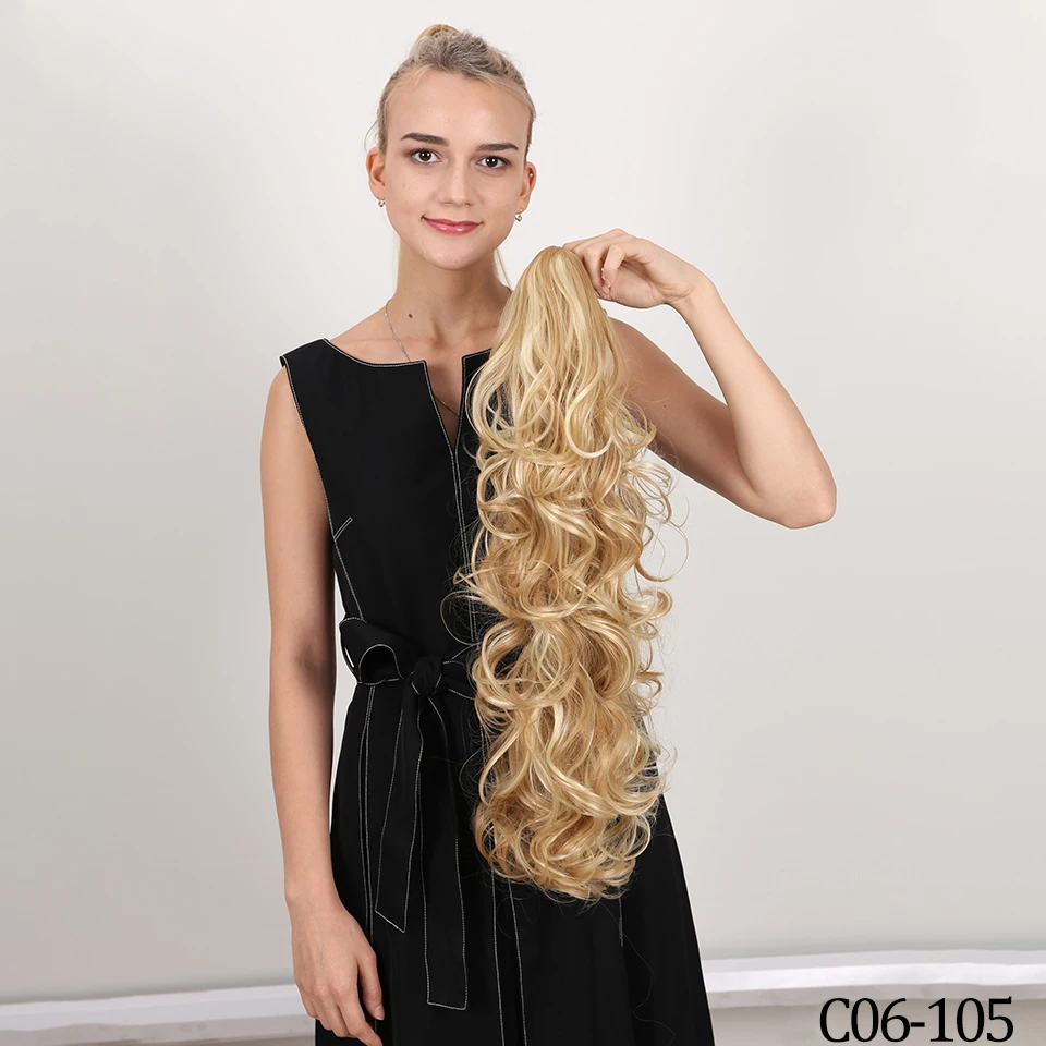 Длинные волнистые волосы BUQI, 24 дюйма, с зажимом, хвостик, наращи...