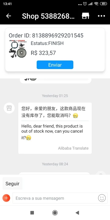 Продавец не отправил товар. Попросили отменить заказ, указав отсутствие товара на складе. День 28/09, все еще вовремя для доставки, продавец предлагает тот же продукт, те же условия, только для более высокой стоимости. Заплатил 323,57 долл. США, и он продал за 424,10 долл. США, поэтому увидел, что отправлено из-за отсутствия запасов, но потому что не продал сумму, которая была объявлена при моей покупке. Продавец не выполняет свои обязательства, поэтому ему не доверяют.