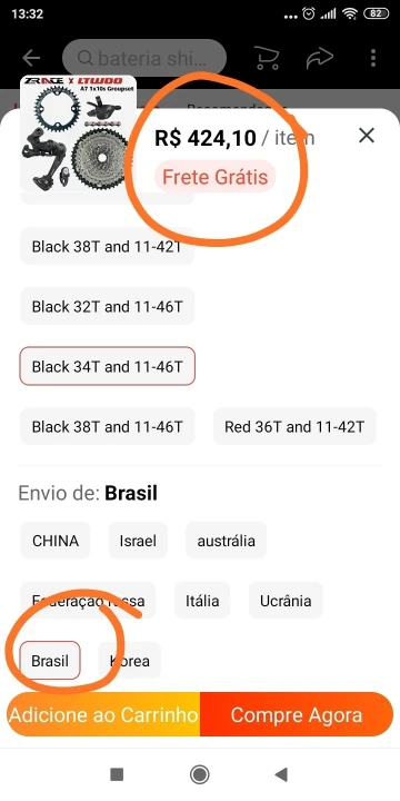Страна: BR Color: Black 34T and 11-46T Ships From: Brazil Доставка: Correios 29.09.2021