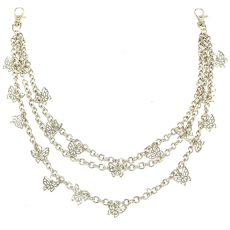 Цепочка в стиле панк-рок унисекс для брюк с бабочкой, трехслойные м...