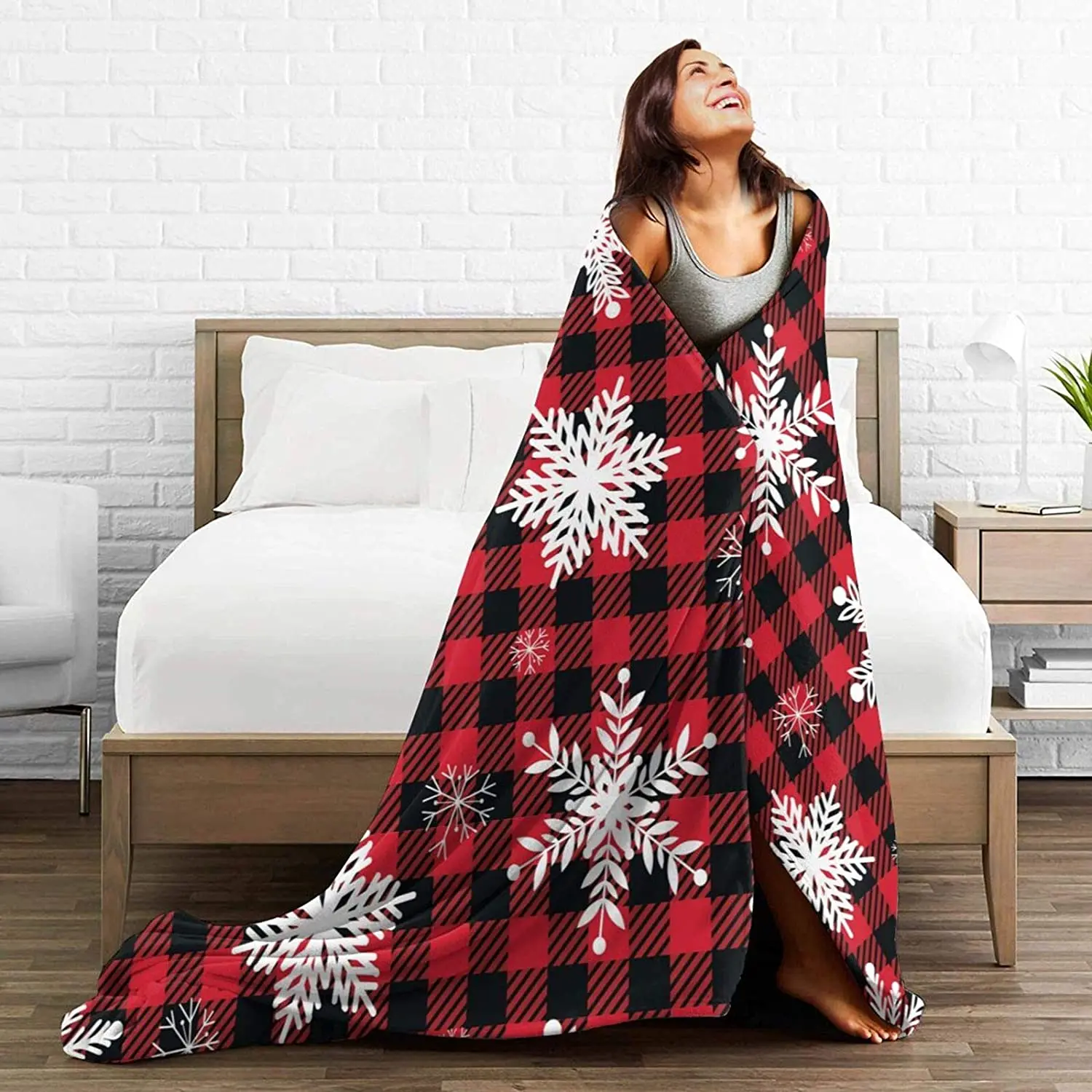 Рождественское Фланелевое пушистое полностью Флисовое одеяло, красное, Черное и белое, Королевский размер