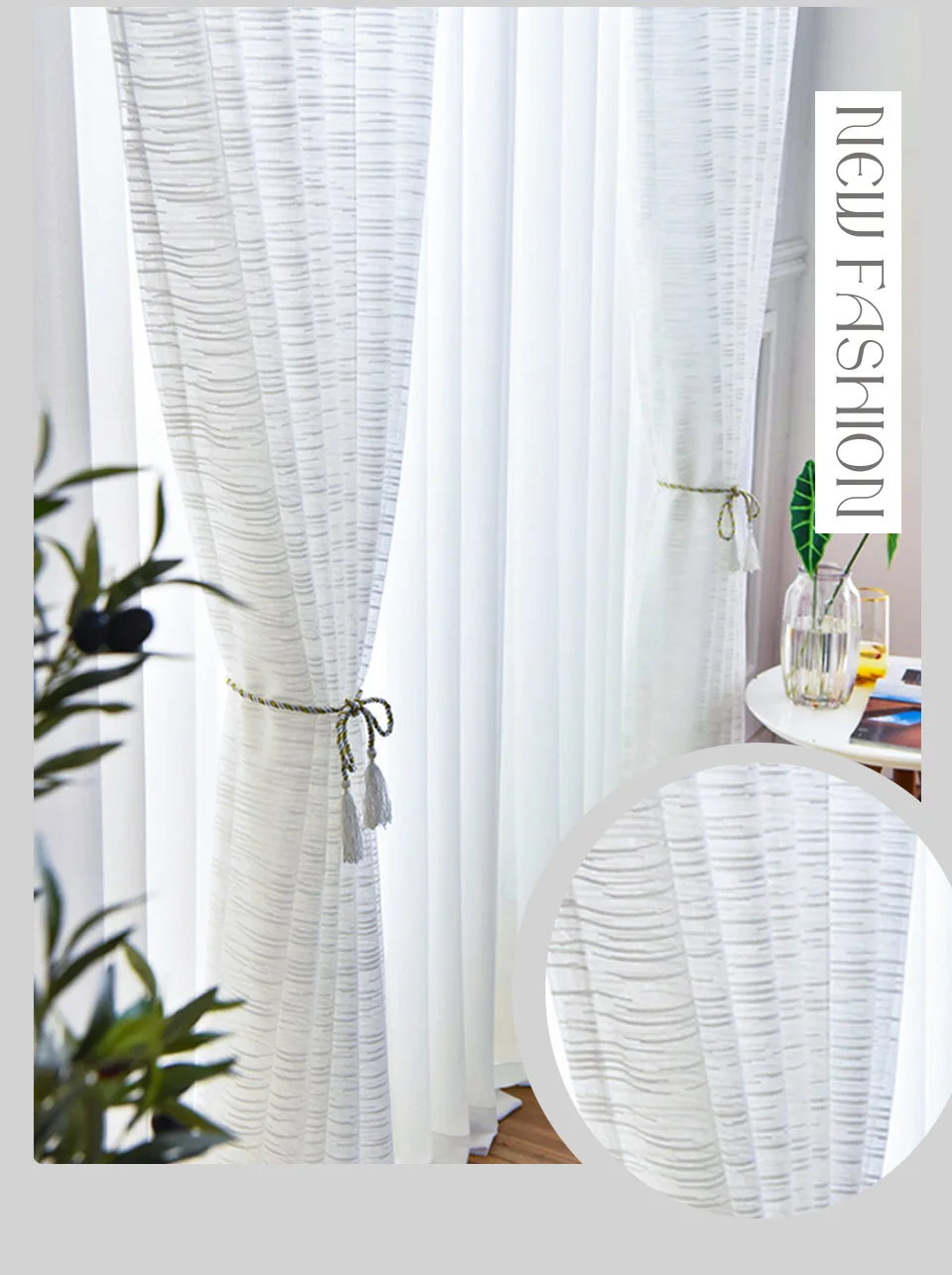 Белая Тюлевая занавеска в полоску для гостиной в японском стиле, ль...
