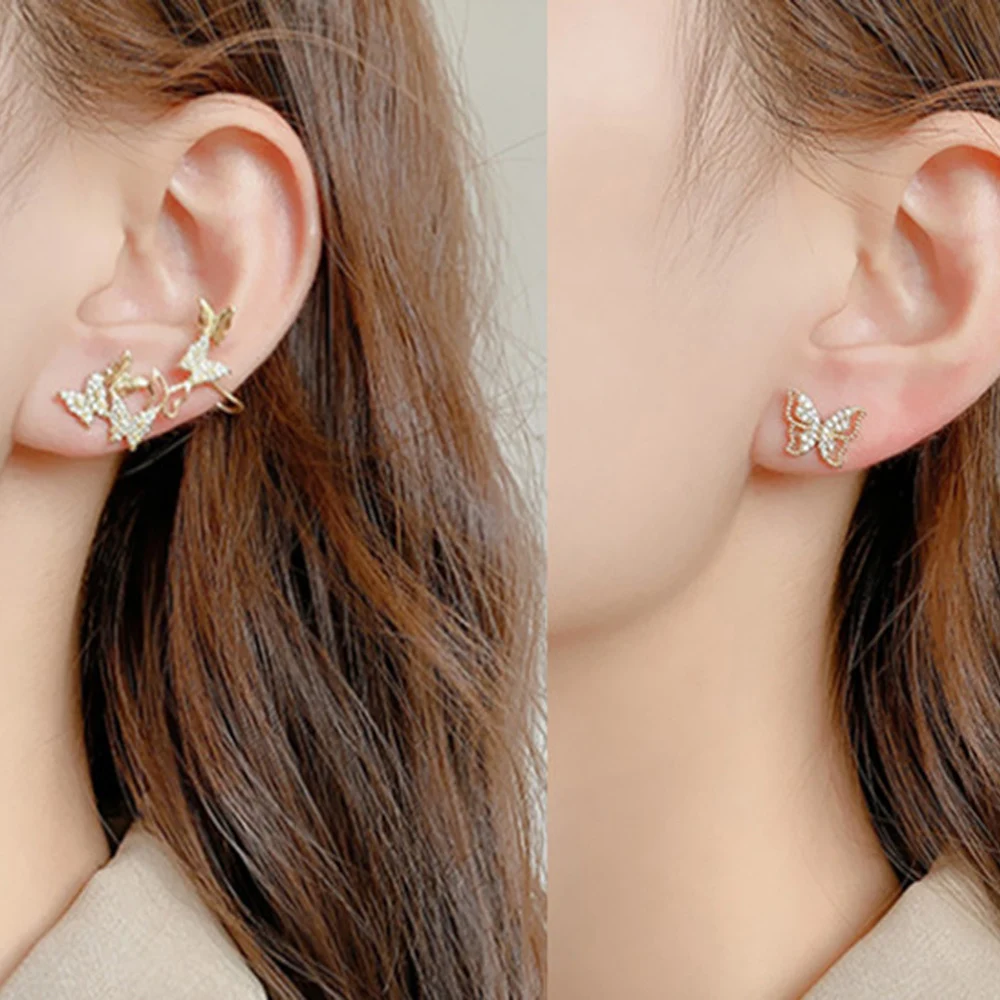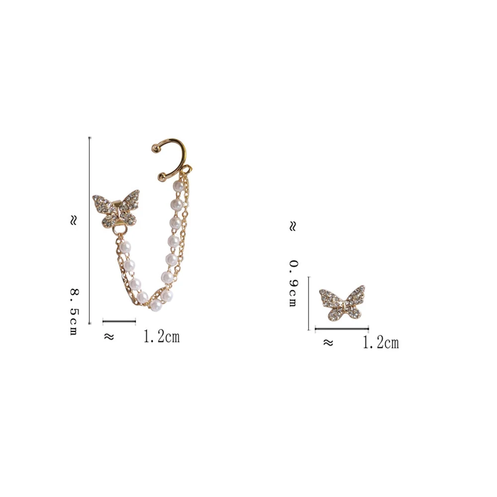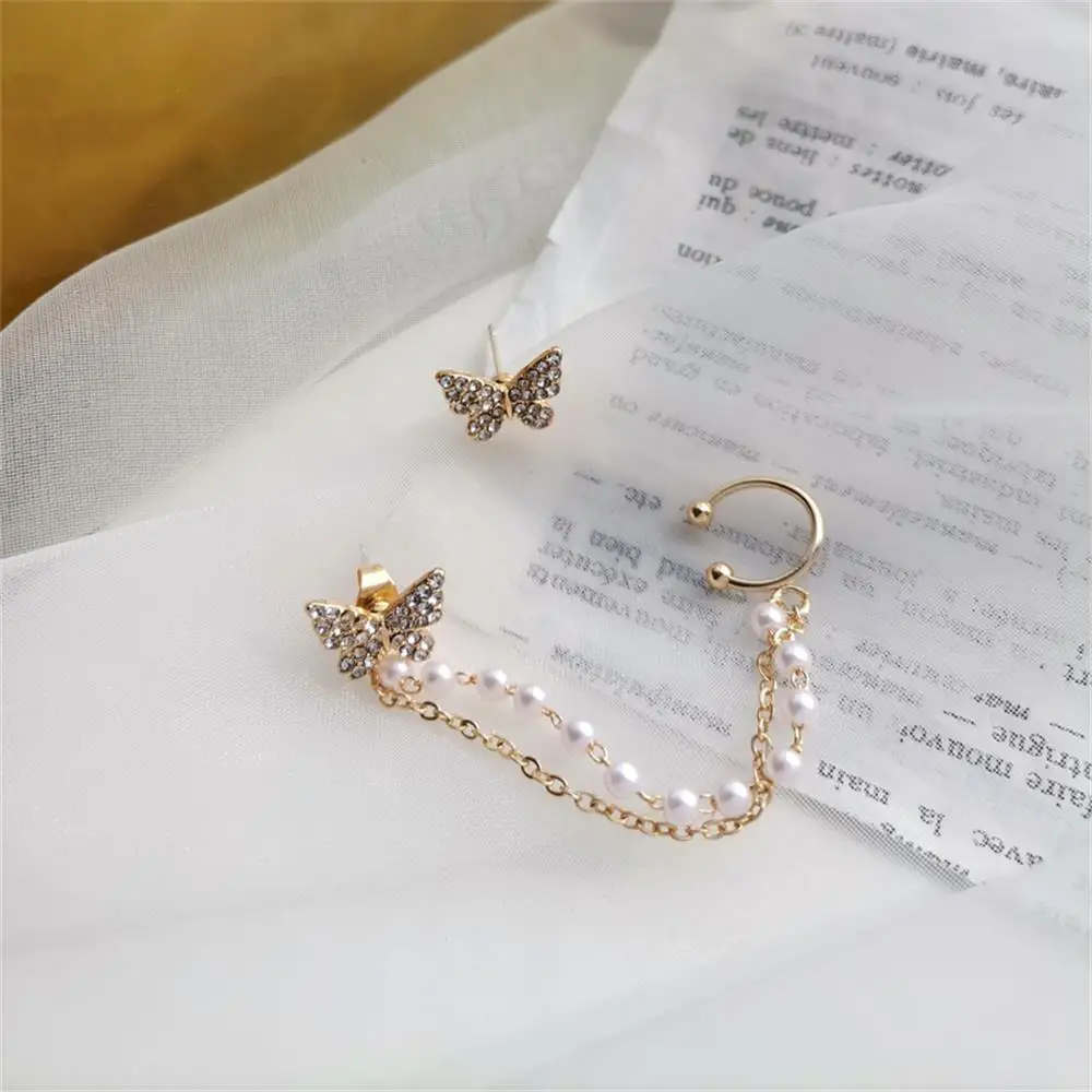 Женские серьги-клипсы с бабочкой, Винтажные серьги с жемчугом и кисточками, золотые ювелирные изделия из нержавеющей стали, женские модные подарочные аксессуары