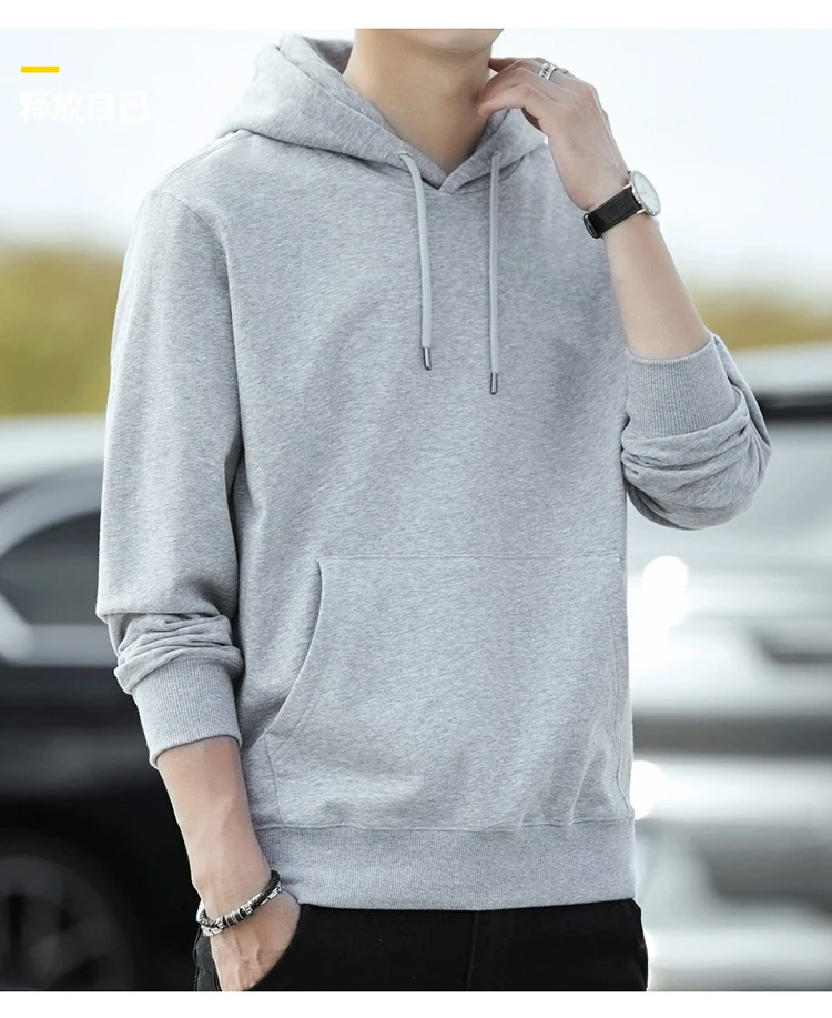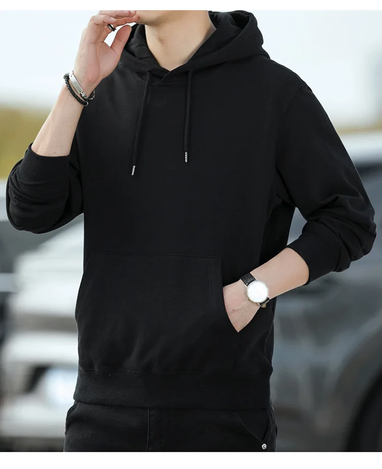Мужской хлопковый свитшот с капюшоном, классический базовый однотонный Молодежный Спортивный Повседневный пуловер с большими карманами, мужские топы оверсайз, осень 6053