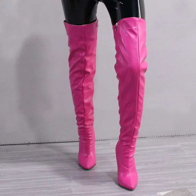 Новинка 2021, женские высокие сапоги, привлекательные Женские Сапоги выше колена, высокие сапоги до бедра, женские цветные сапоги на тонком высоком каблуке для девочек