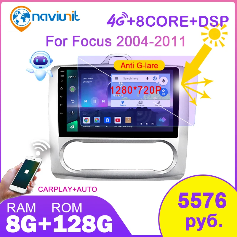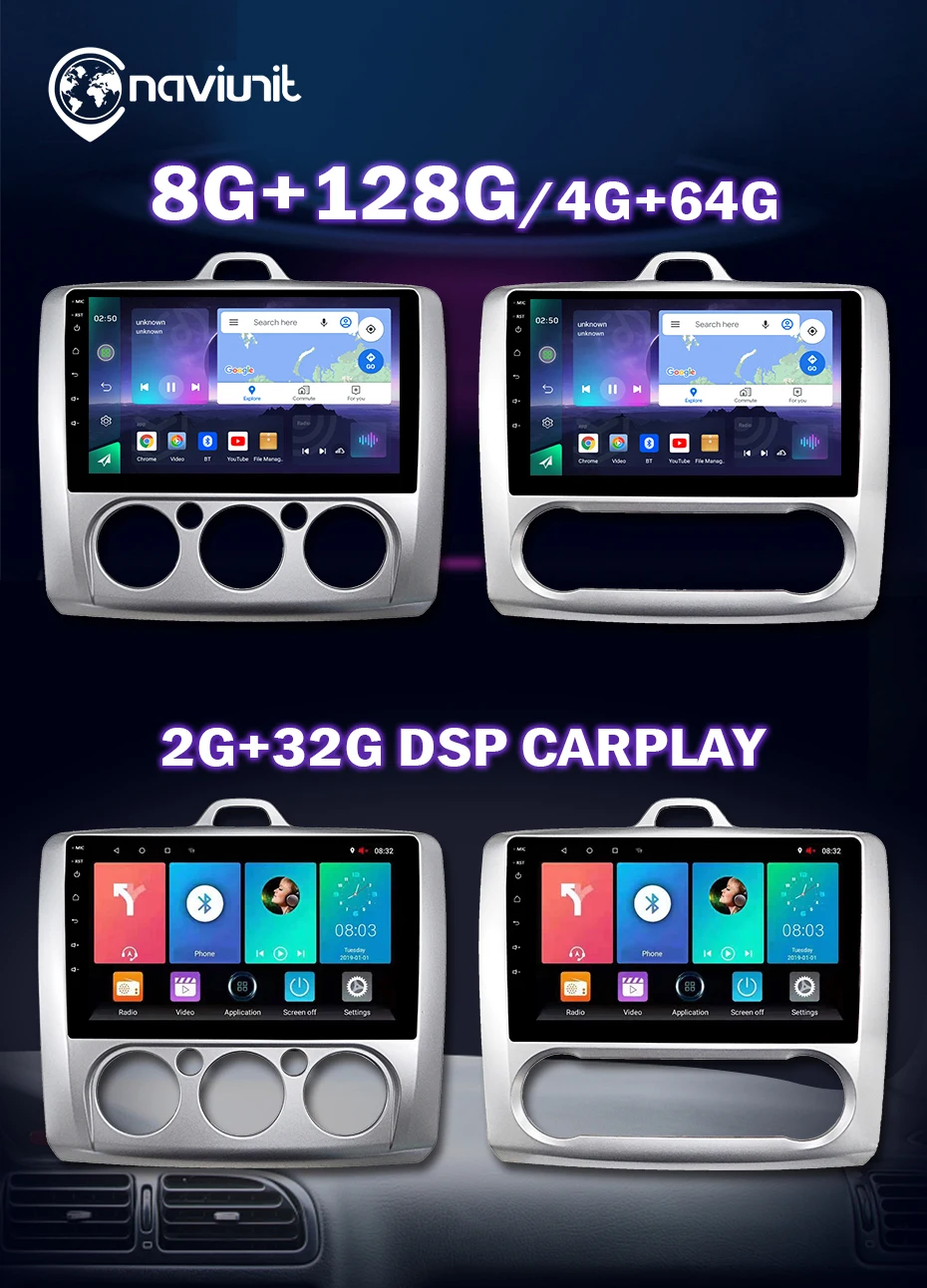 Naviunit автомагнитола 2дин андройд 10 с экраном магнитола для ford focus EXI MT 2 3 Mk2Mk3 2004-2011, интеллектуальная система Мультимедиа Видео Carplay автомагнитола блютуз автозвук Навигация DVD магнитофон в машину