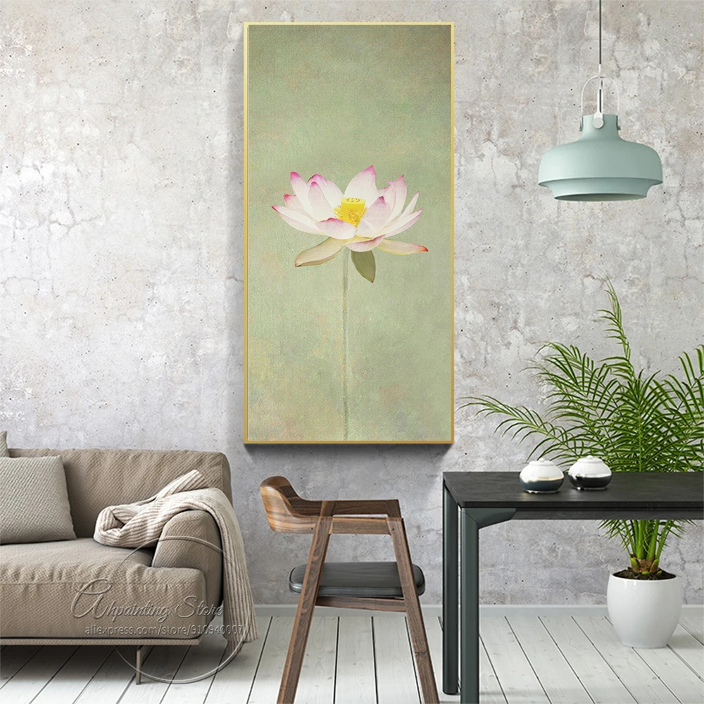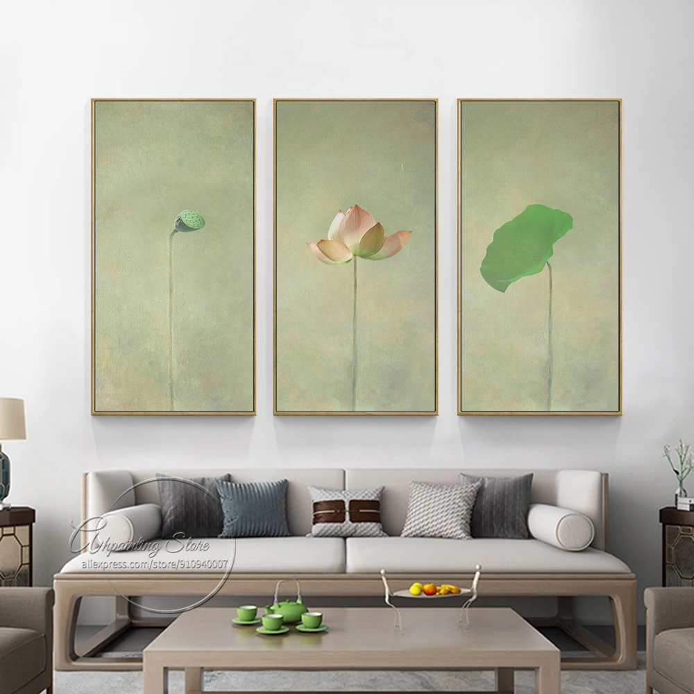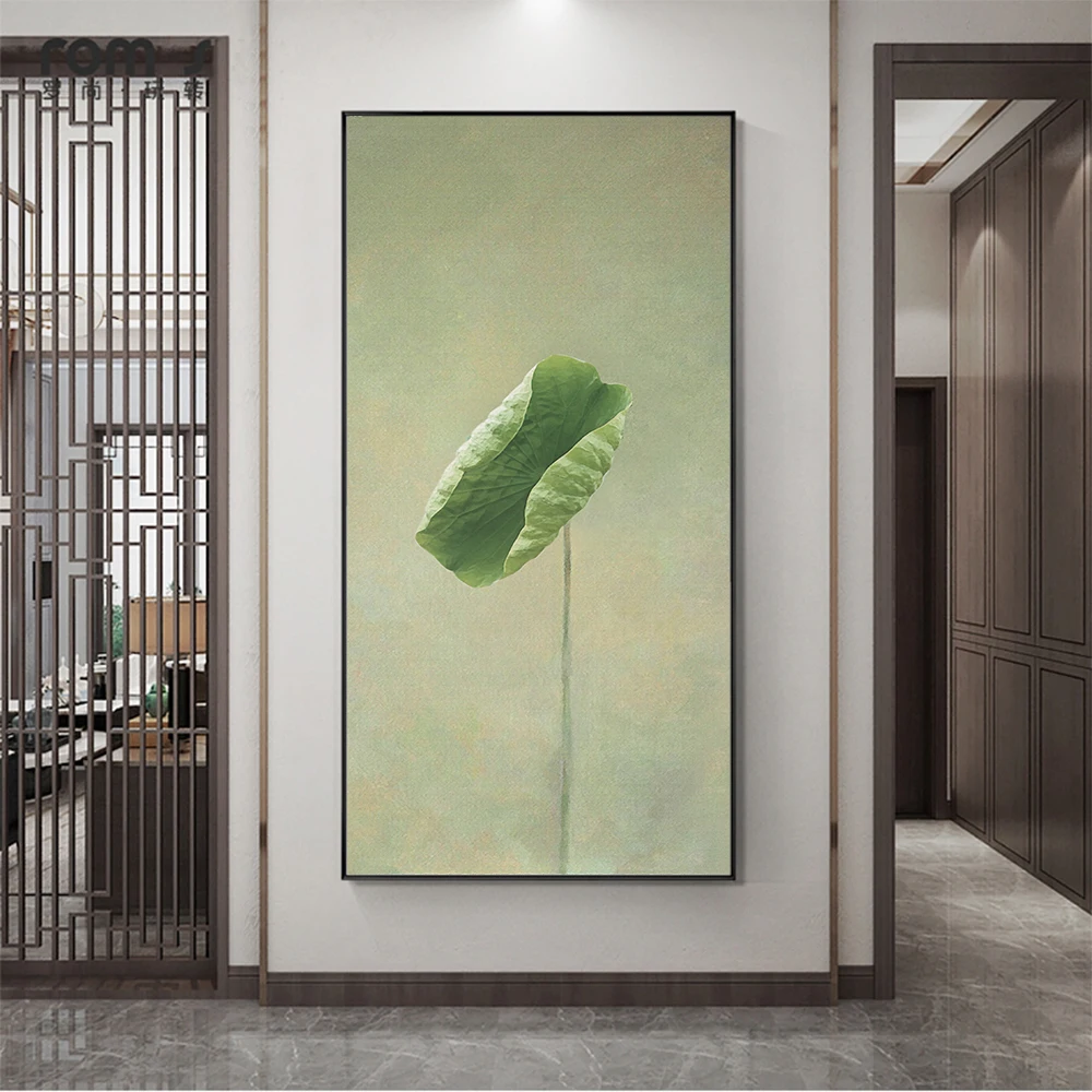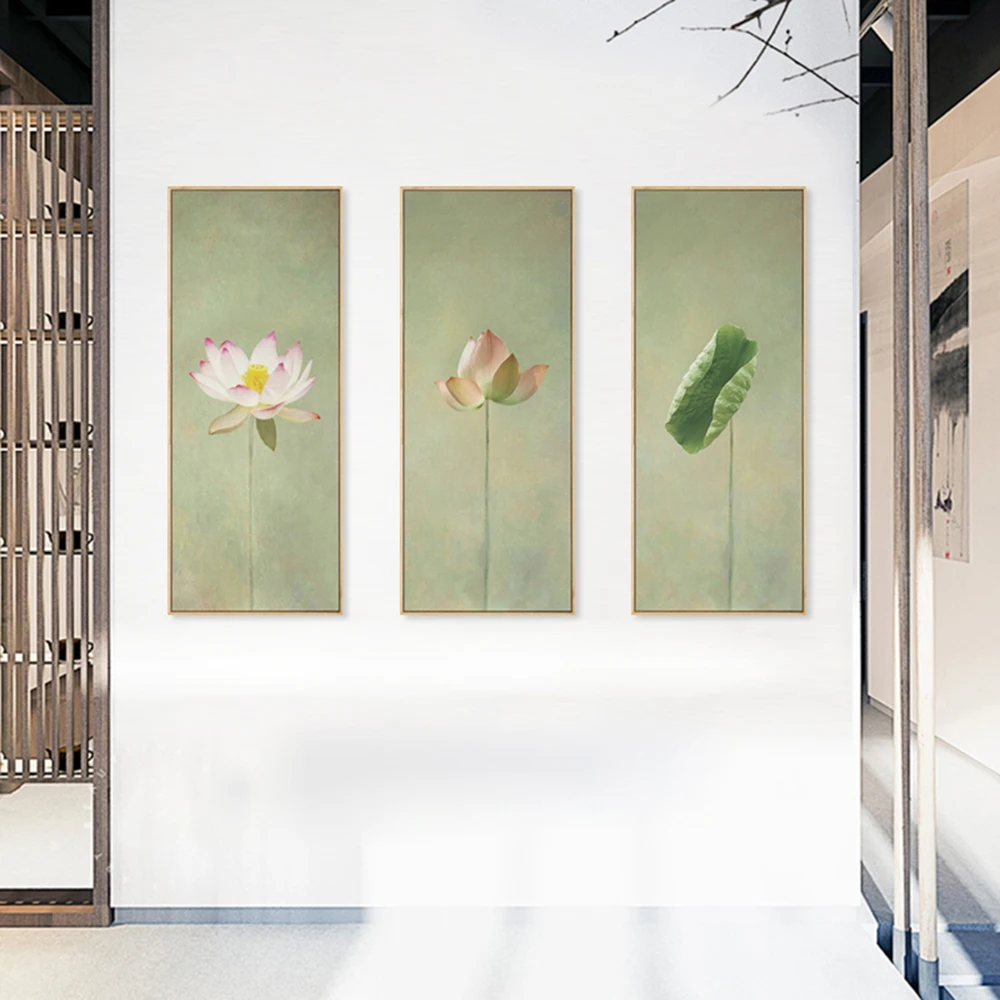 Постер в китайском стиле с цветами, зелеными растениями, декоративная картина на холсте цветок лотоса, пейзаж, настенные картины для спальни, домашний декор