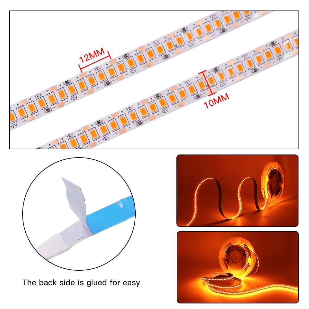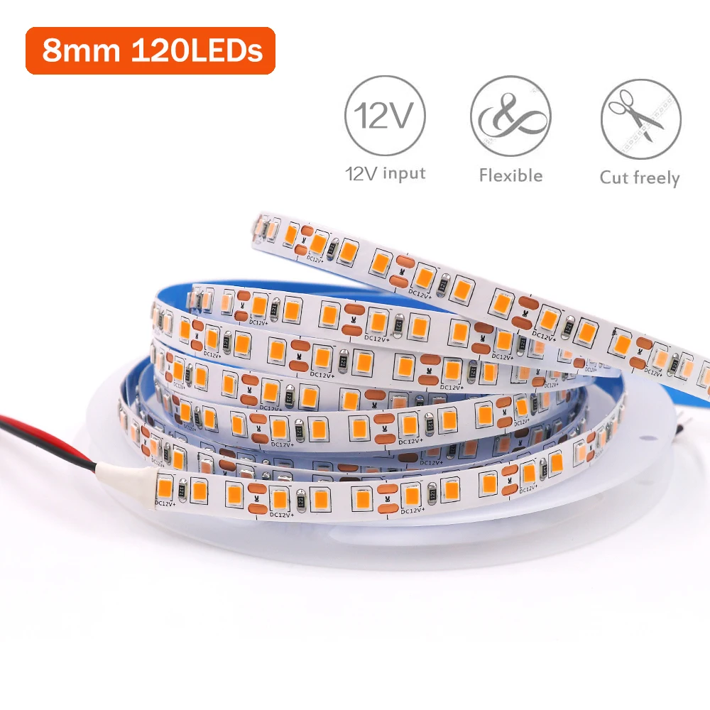 DC 12V светодиодный ленточный светильник оранжевый 2835 SMD 120240 светодиодов Гибкая светодиодная лента 4 мм 8 мм 10 мм ширина светодиодный ленточный светильник веревка для украшения 5 м