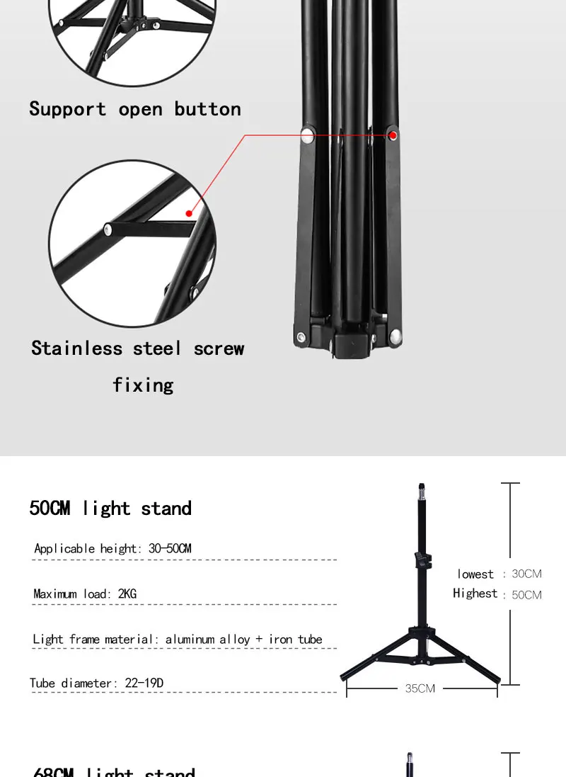 Штатив для фотостудии, 50160200 см, регулируемый светильник с винто...
