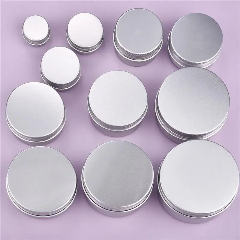 Алюминиевая банка для свечей, металлический контейнер для заправки, пустая банка для крема, бальзама для губ, жестяная коробка, горшок для воска для волос, серебристая банка, 510305060708090 мл