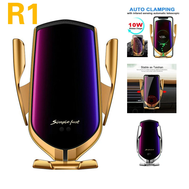 Беспроводное Автомобильное зарядное устройство R1 10 Вт, автоматический зажим держателя телефона, автомобильное беспроводное зарядное устройство для телефона