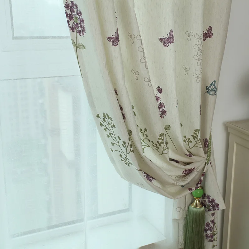 Бежевые занавески из хлопка и льна для гостиной, спальни, цветочные...