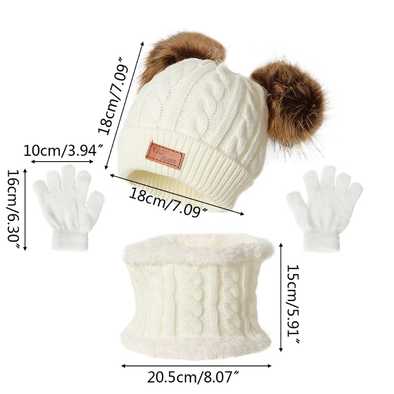 3 шт., зимняя теплая шапка для младенца, перчатки, шарф, набор, утепленный однотонный помпон, шапка, шапка, варежки для мальчиков и девочек, От 1 до 5 лет