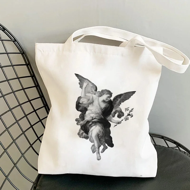 Готическая сумка для покупок с принтом Темных Ангелов, сумки для покупок, Женская многоразовая сумка Ecobag, Холщовая Сумка через плечо, вместительная сумка-тоут