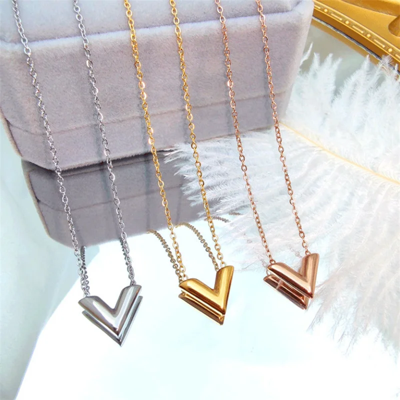 Женское Ожерелье из титановой стали с V-образной подвеской