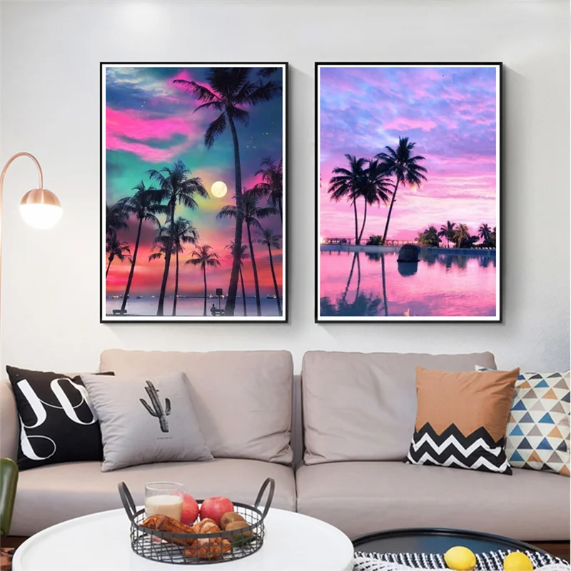 Солнечный пляж река морской пейзаж плакаты и принты HD печать на ст...