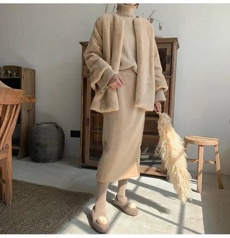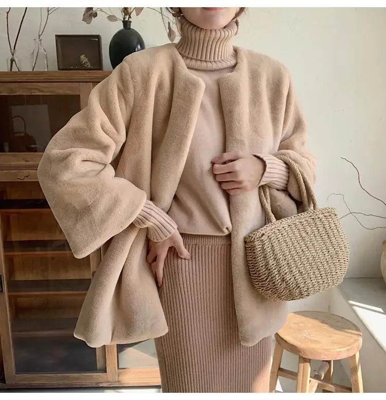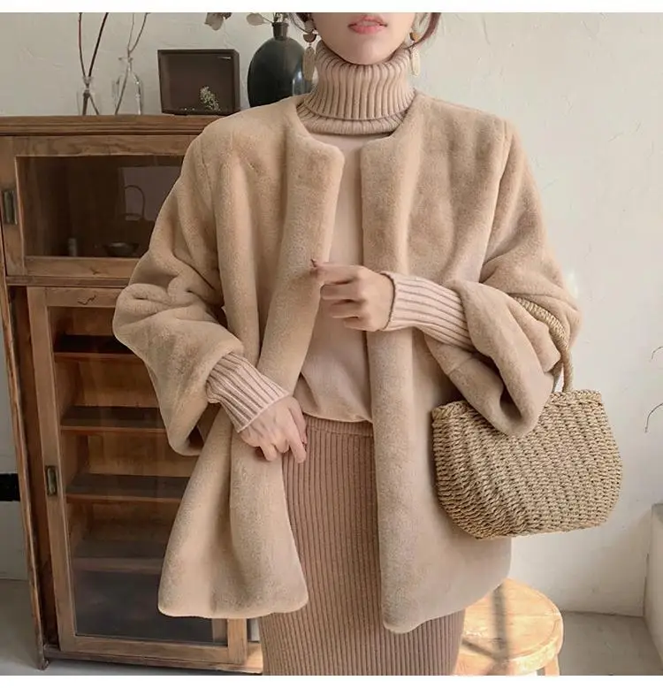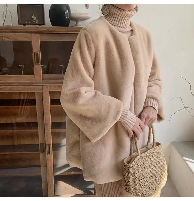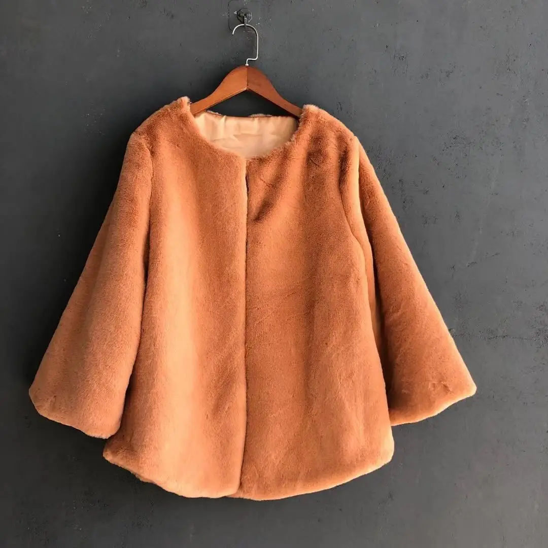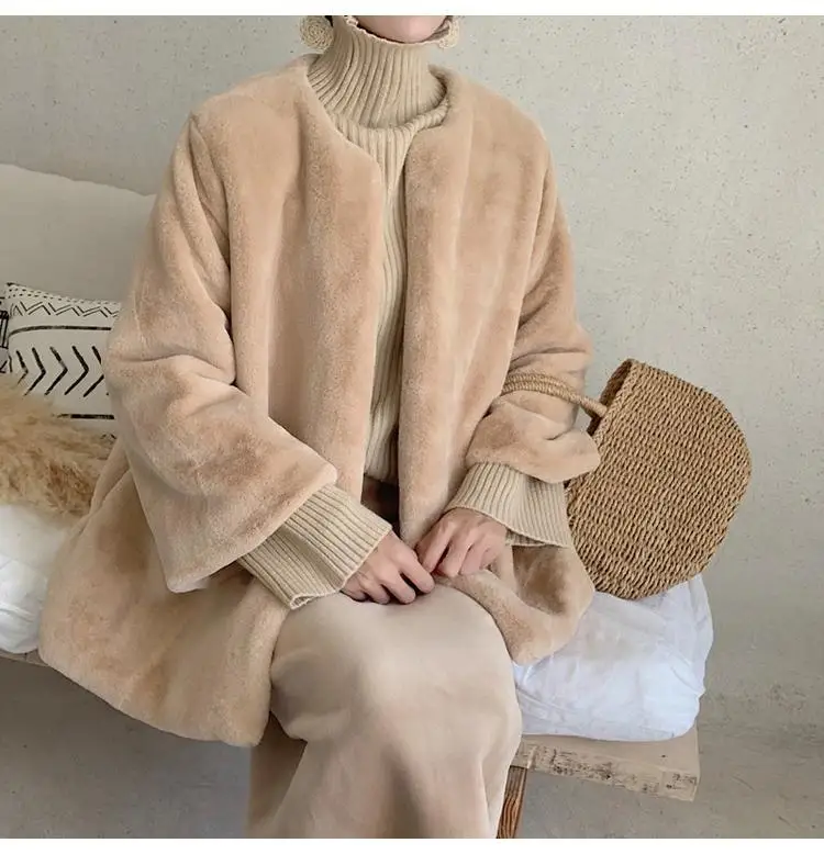 Зимнее женское пальто из искусственного меха, однотонное минималистичное простое свободное меховое пальто в Корейском стиле, Женская Теплая Флисовая верхняя одежда