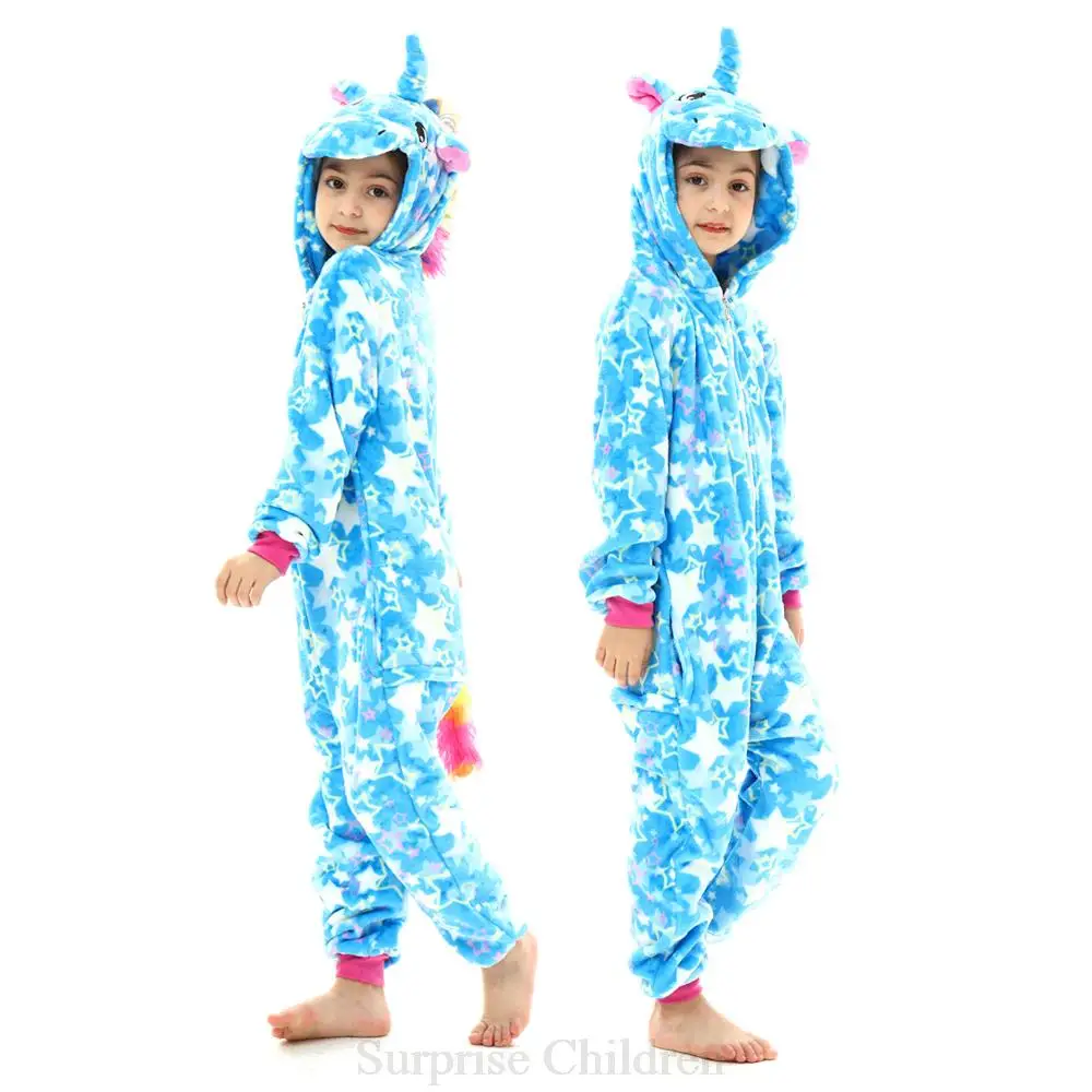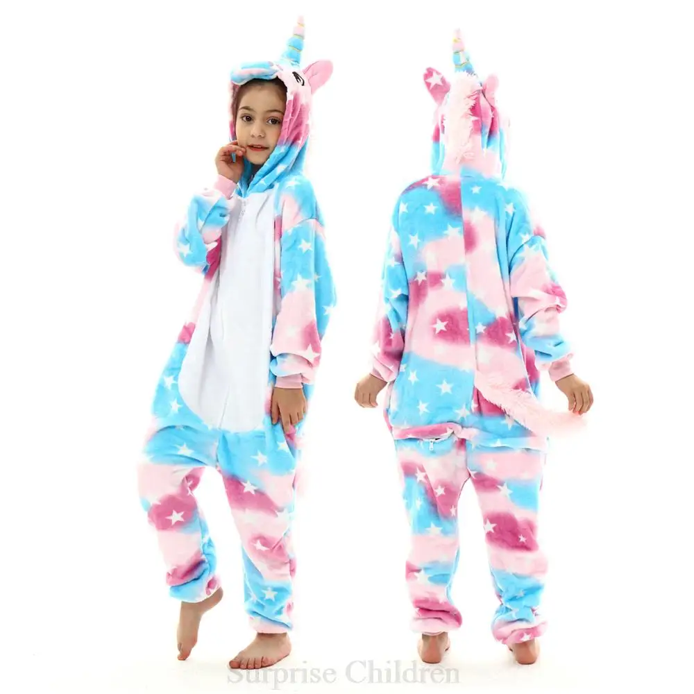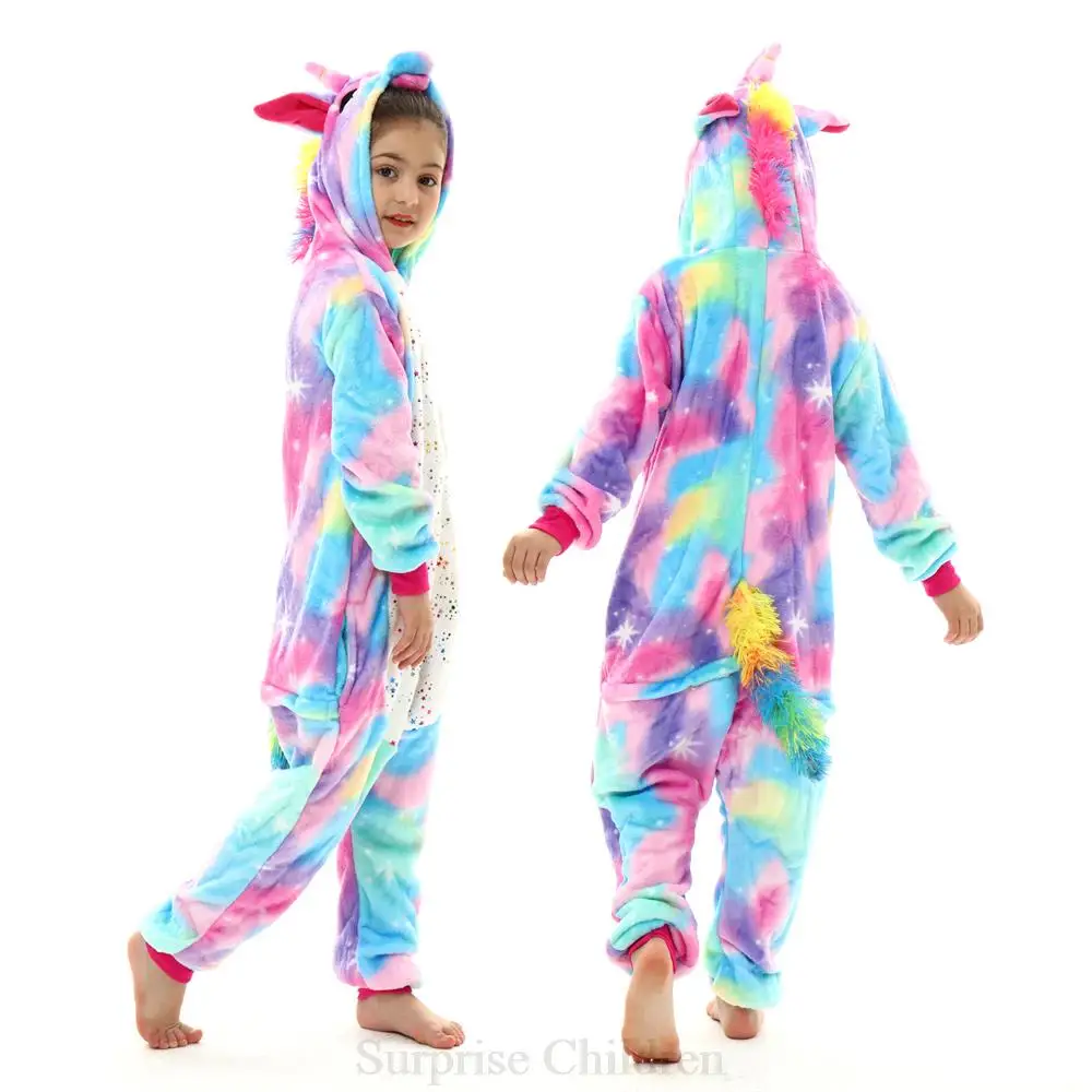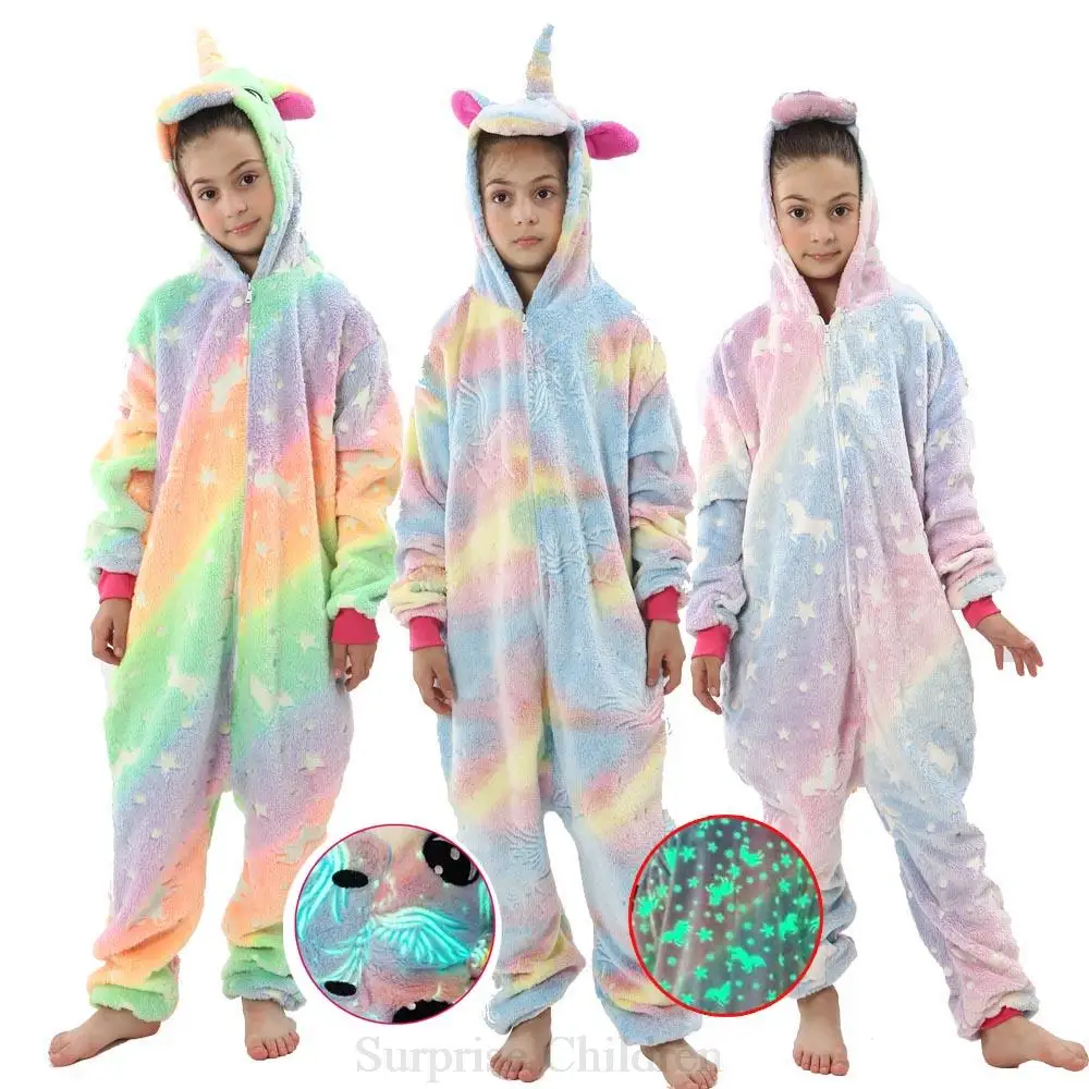 Светящаяся теплая пижама в виде единорога для детей, одежда для сна для девочек, детские кигуруми, удобный комбинезон в виде животных для модных радужных пижам