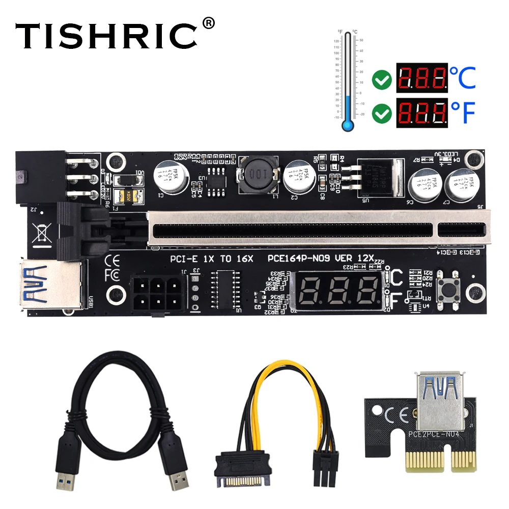TISHRIC PCIE Riser PCI Express X16 Riser 6PIN Power PCI-E 1X TO 16X Майнинг Райзер для видеокарты Шахтер Майнинг датчик температуры