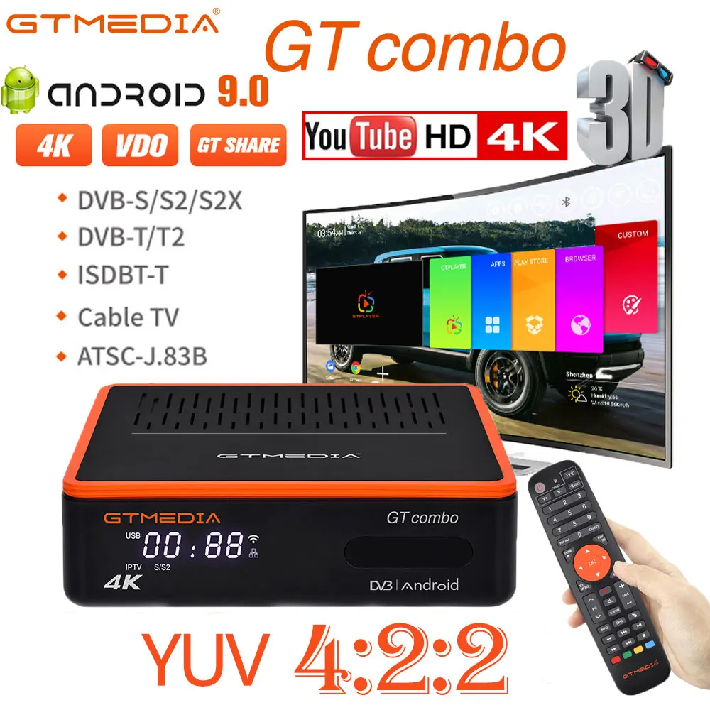 GTMEDIA GT Combo TV Box Android 9.0 + DVB-S2X T2 C ATSC-C (J.83B) ISDBT Staellite Receiver NEW Android Smart TV BOX Кабельный декодер Спутниковый приемник Тюнер CA-карта M3u H.265 10-битная телеприставка
