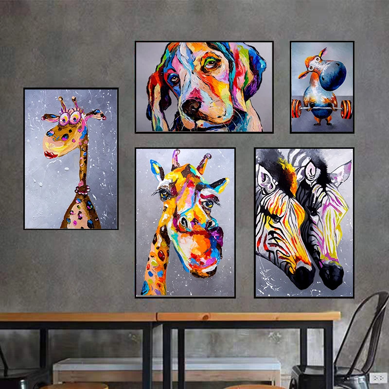 Абстрактная Скандинавская забавная животная картина маслом на холсте настенный художественный плакат и принты настенные картины для гостиной