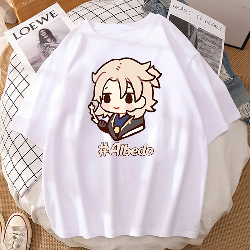 Футболки Genshin Impact Game Graphic Kawaii мультяшный альбедо Беннетт топы с принтом Женский Мужской стиль футболка с персонажами игры