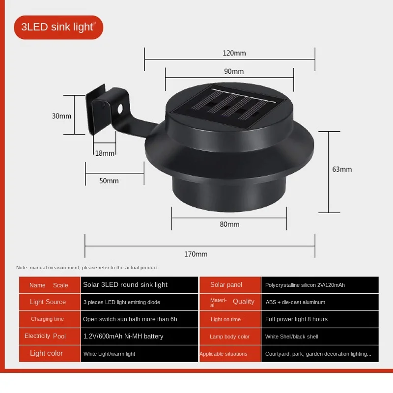 Светодиодный светильник с датчиком освещенности солнечной энергии, желоба, садовый наружный светильник, забор, безопасность, настенный светильник, декоративное крепление