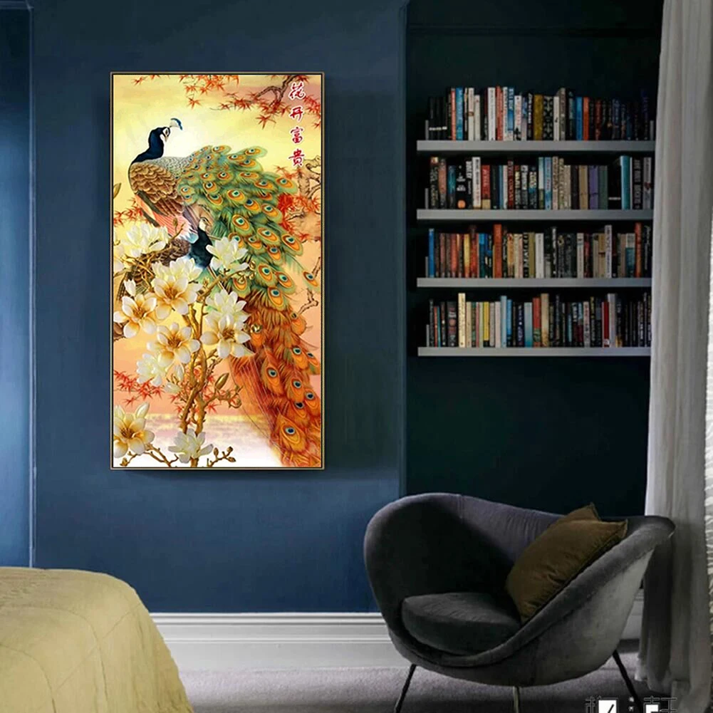 5ddiy алмазная живопись полный круг Алмазная вышивка павлин Стразы Вышивка крестиком Мозаика картина для украшения дома 50x95 см