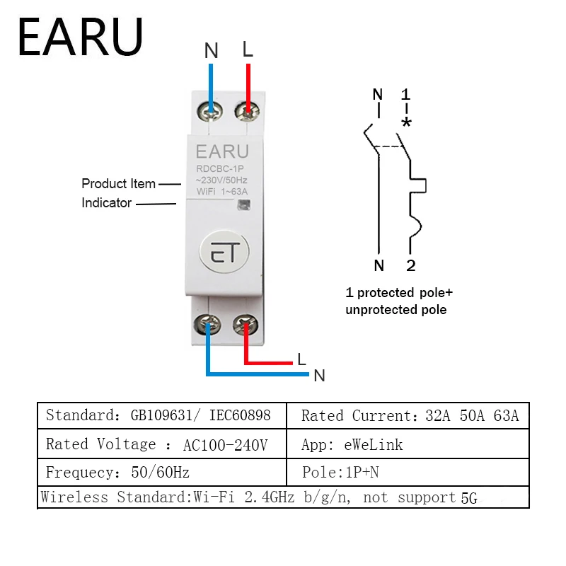 Автоматический выключатель eWeLink, 1P + N Din-рейка, Wi-Fi, умный ...