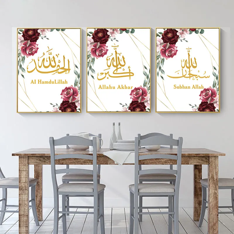Мусульманский холст Художественная печать PosterMuslim Subhan Аллах Арабский стиль Allahu Akbar AI hamdulillah каллиграфия Цветочная Роспись стен домашний декор