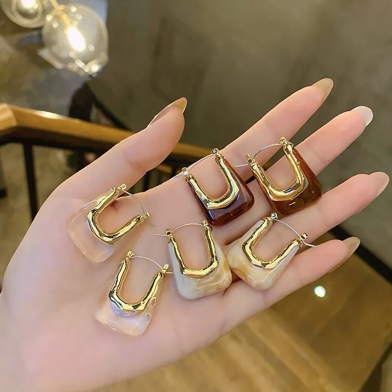 НОВЫЕ геометрические акриловые U-образные серьги из прозрачного зол...
