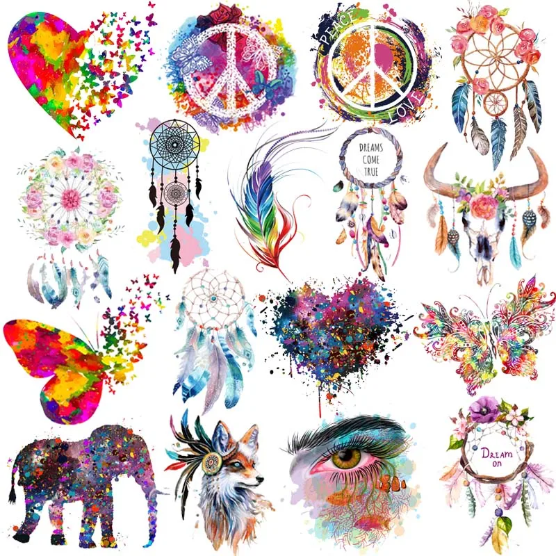 Наклейки для глажки Ловец снов, "Бабочки, цветы, сердце", "сделай сам", термонаклейки для одежды, виниловые нашивки с теплопередачей