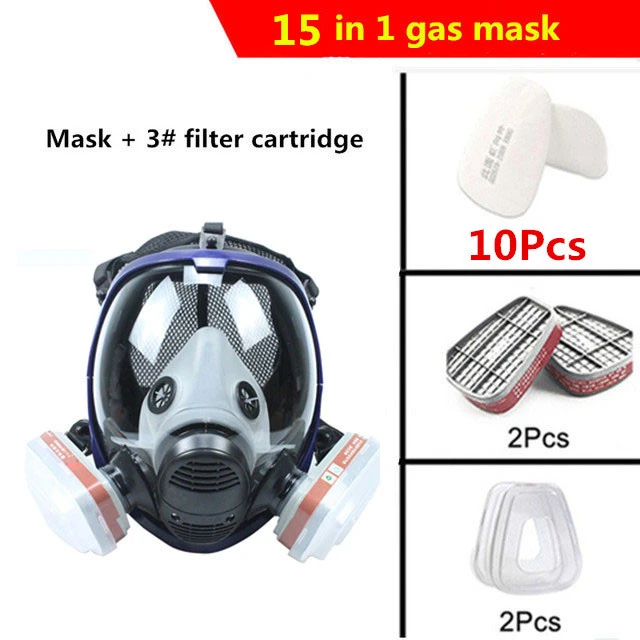 Органический Набор из 7 предметов:• 1x6800 маска для лица• 2x6001 фильтрующий картридж для органических газов• Хлопковые фильтры-2 шт.• 2 x крышка фильтраКислотный газ 7 шт набор:• 1x6800 маска для лица• 2 картриджа для газового фильтра 6002 кислоты• Хлопковые фильтры-2 шт.• 2 x фильтраНабор из 7 предметов аммиака:• 1x6800 маска для лица• 2x6004 фильтрующий картридж для аммиака и сероводорода• Хлопковые фильтры-2 шт.• 2 x крышка фильтраОрганический набор из 17 предметов:• 1x6800 маска для лица• 2x6001 фильтрующий картридж для органических газов• Хлопковые фильтры-10 шт.• 2 x крышка фильтра• 2 шт. x 2091 P100 Тип Пылезащитная пленка дешевоОрганический набор из 15 предметов:• 1x6800 маска для лица• 2x6001 фильтрующий картридж для органических газов• Хлопковые фильтры-10 шт.• 2 x крышка фильтра▼ 3 # коробка: коричневыйФункция продукта: бензол и его homologs, органические газы, бензин, ацетон, дисульфид углерода, эфир, хлороформ, подходит для распыления краски и распыления пестицидов.▼ 7 # коробка фильтра: желтыйХарактеристики продукта: кислотный газ и пар, фосген, хлорид водорода, оксиды азота, диоксид серы, диоксид хлора, сероводород, фосфоросодержащие пестициды.▼ 4 # фильтр коробка: зеленыйФункция продукта: для аммиака, метиламина, производных аммиака.▼ 2091 фильтр хлопок: красный фильтр хлопокЭффект фильтрации достигает 95%. Подходит для твердых частиц, таких как пыль, произведенная во время обработки руды, угля, железной руды, хлопка, муки и т. д., подходит для жидких или масляных частиц, которые могут производить вредные испарения без распыления, А также подходит для асбеста, сварочных паров и защиты стекловолокна.