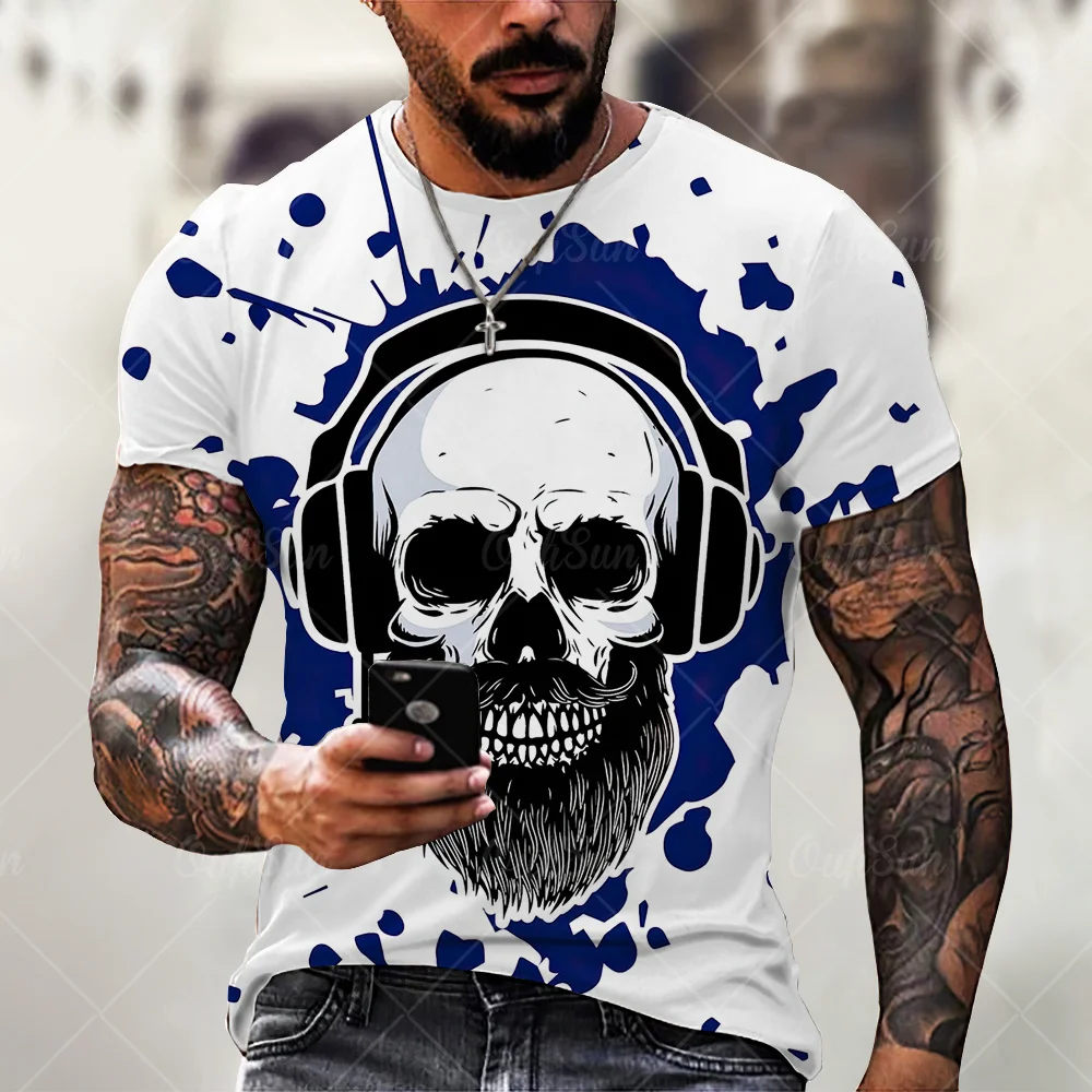 Мужская футболка с принтом черепа, Повседневная футболка с коротким...