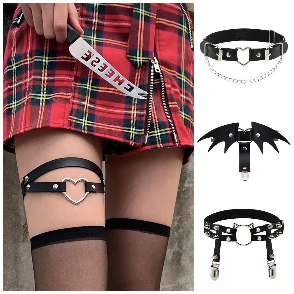 Женский пояс для чулок из искусственной кожи, в стиле панк, с сердечками, эластичный, плотная подвеска