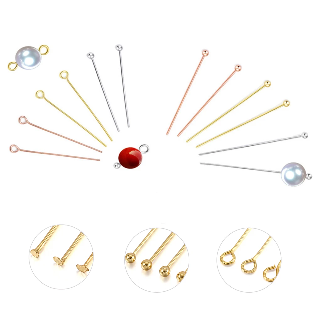 50-100 шт., нержавеющая сталь, плоская головка для глаз, позолоченная, Посеребренная, Шариковая головка, шпильки для самостоятельного изготовления ювелирных изделий
