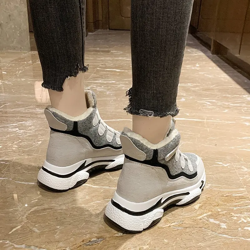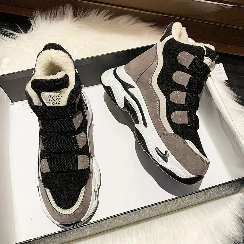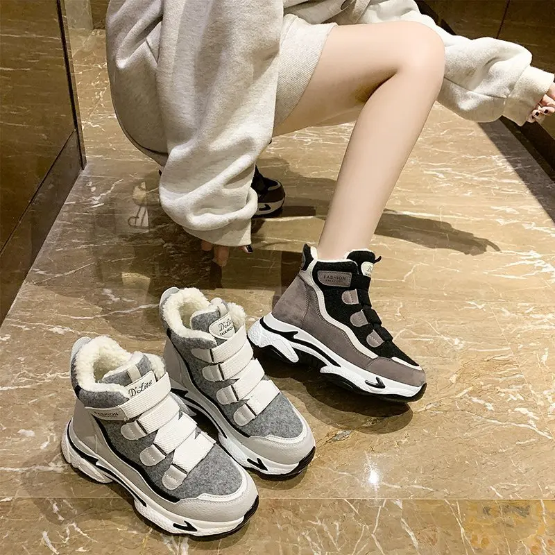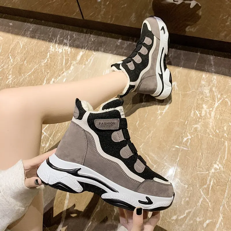 Ботинки женские, на меху, с бархатной подкладкой, бежевые, черные