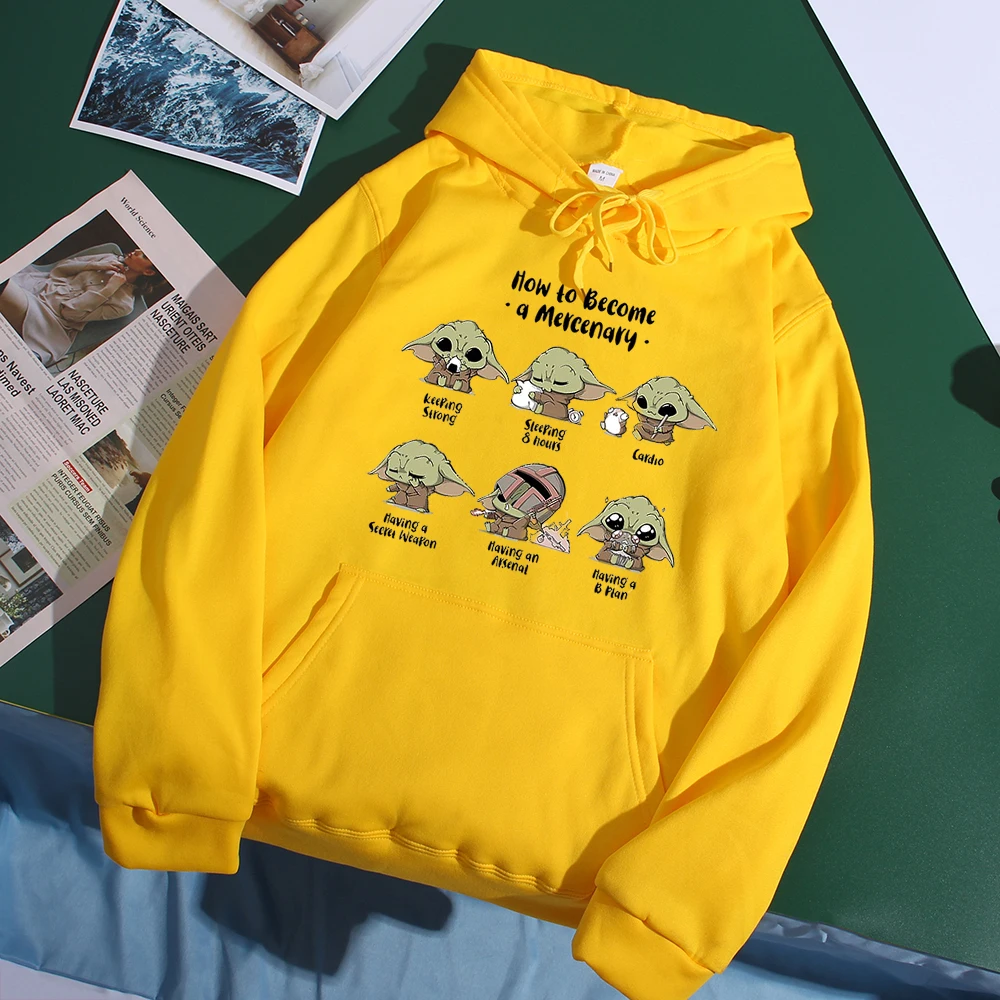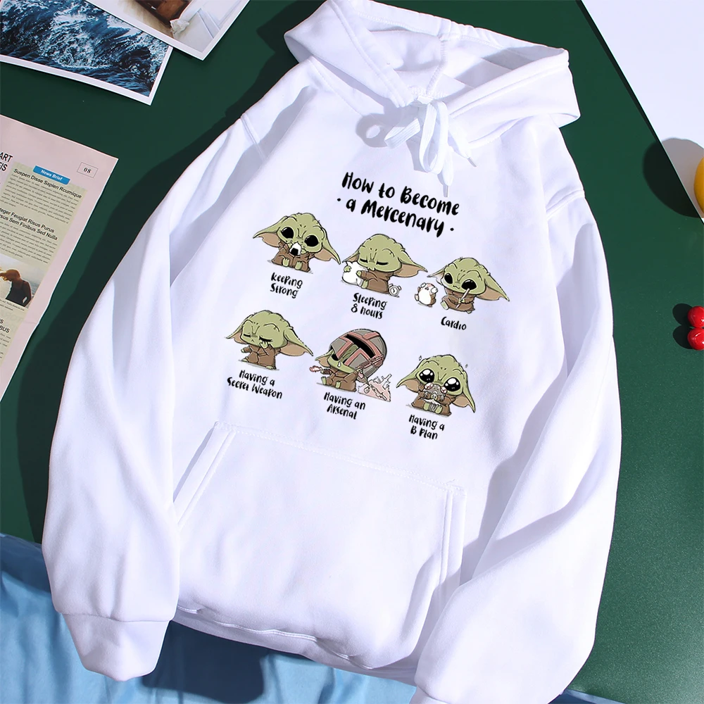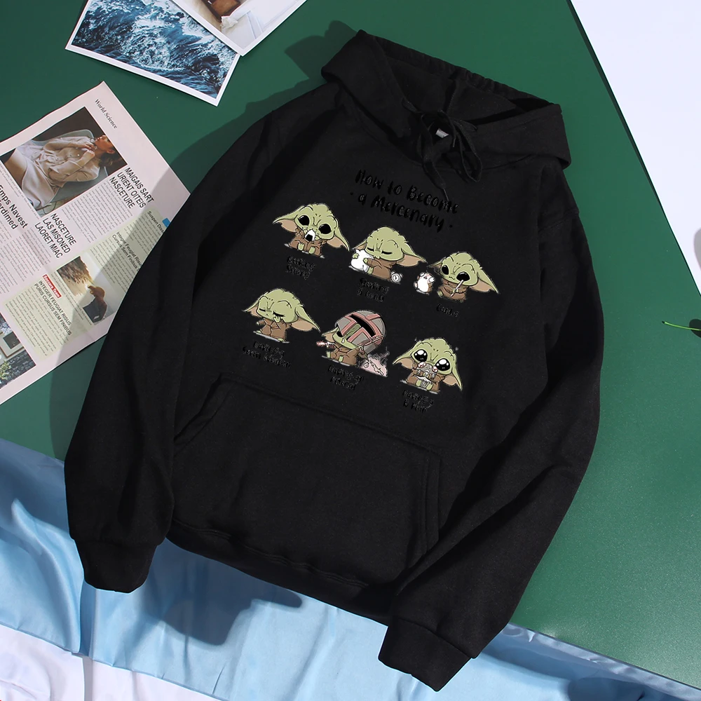 Милые мужские толстовки с капюшоном в стиле мандалор, мужские свитшоты с винтажным рисунком из мультфильма, пуловеры с изображением милой Йоды из Диснея, модная теплая мужская одежда