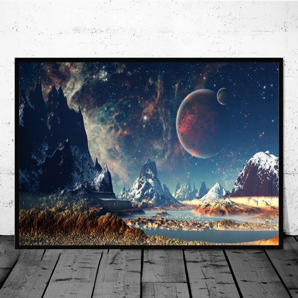 Постеры и принты звездной Вселенной, галактики, космоса, горного неба, пейзажа, холст, художественное украшение на стену, картина для комнаты