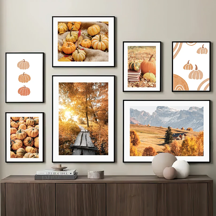 Настенная Картина на холсте осеннее поле бабочка Тыква абстрактные скандинавские постеры и принты настенные картины для декора гостиной