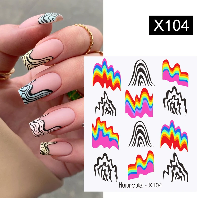 Наклейки для ногтей Harunouta, цветные, волнистые, геометрические, стикеры, рождественские снежинки, слайдер, украшение для ногтей, День Св. Валентина