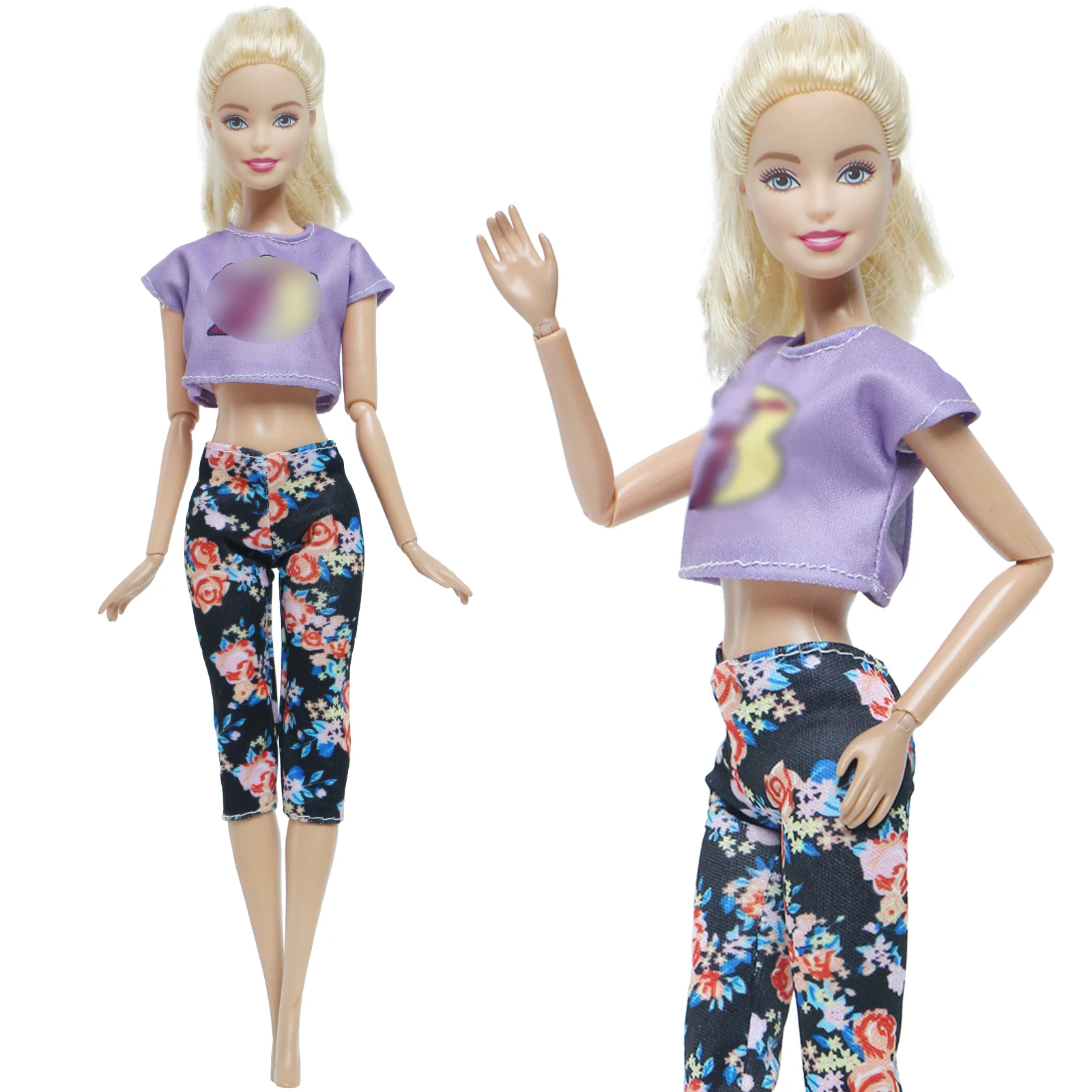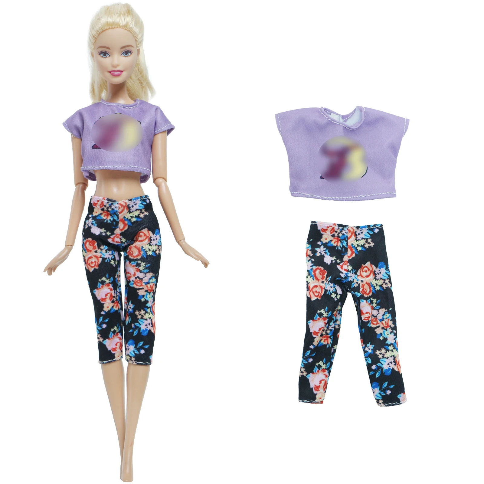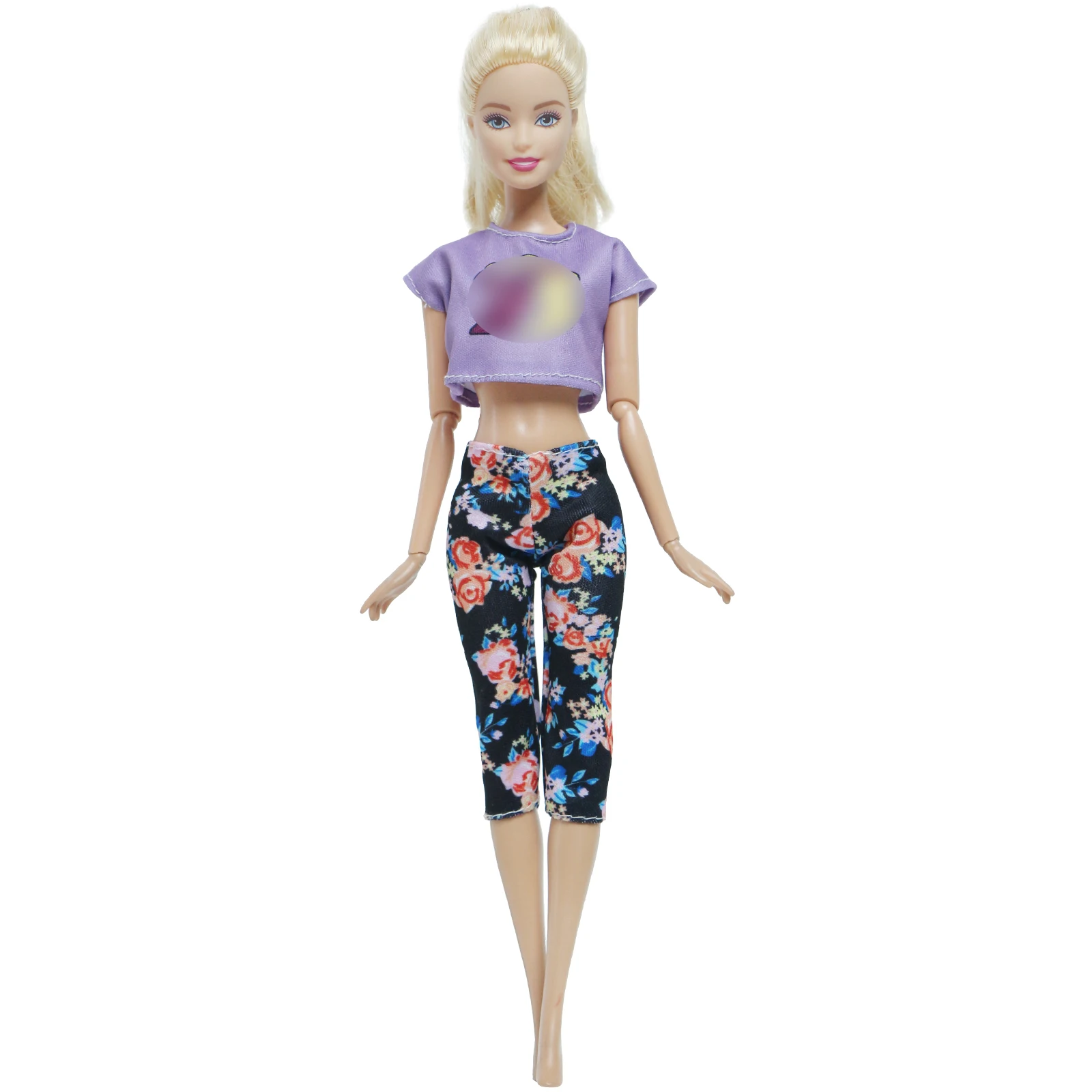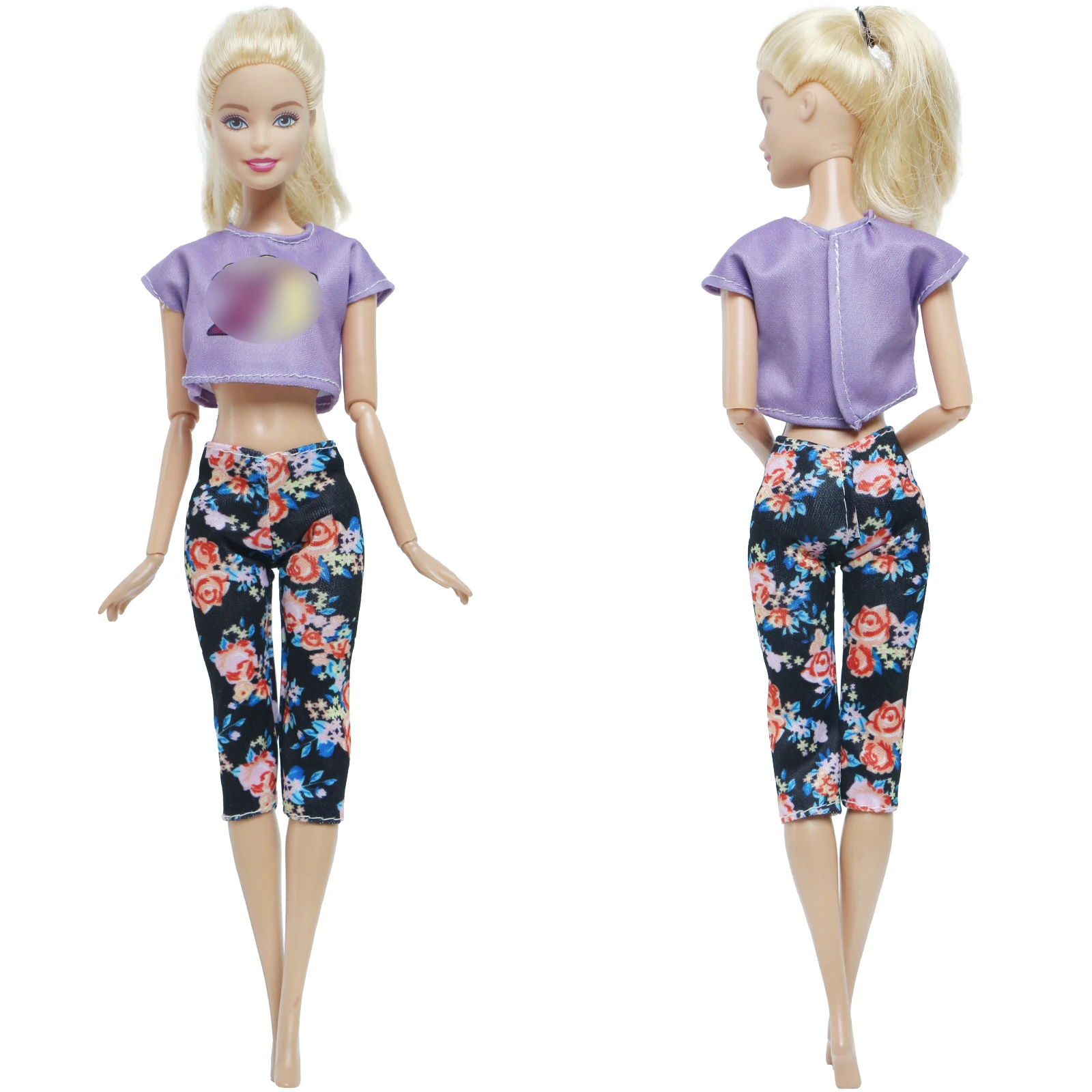 Модный наряд для куклы BJDBUS, штаны с цветочным принтом, футболка, топ, повседневная одежда, брюки для девочек, Одежда для куклы Барби, аксессуары, Подарочная игрушка