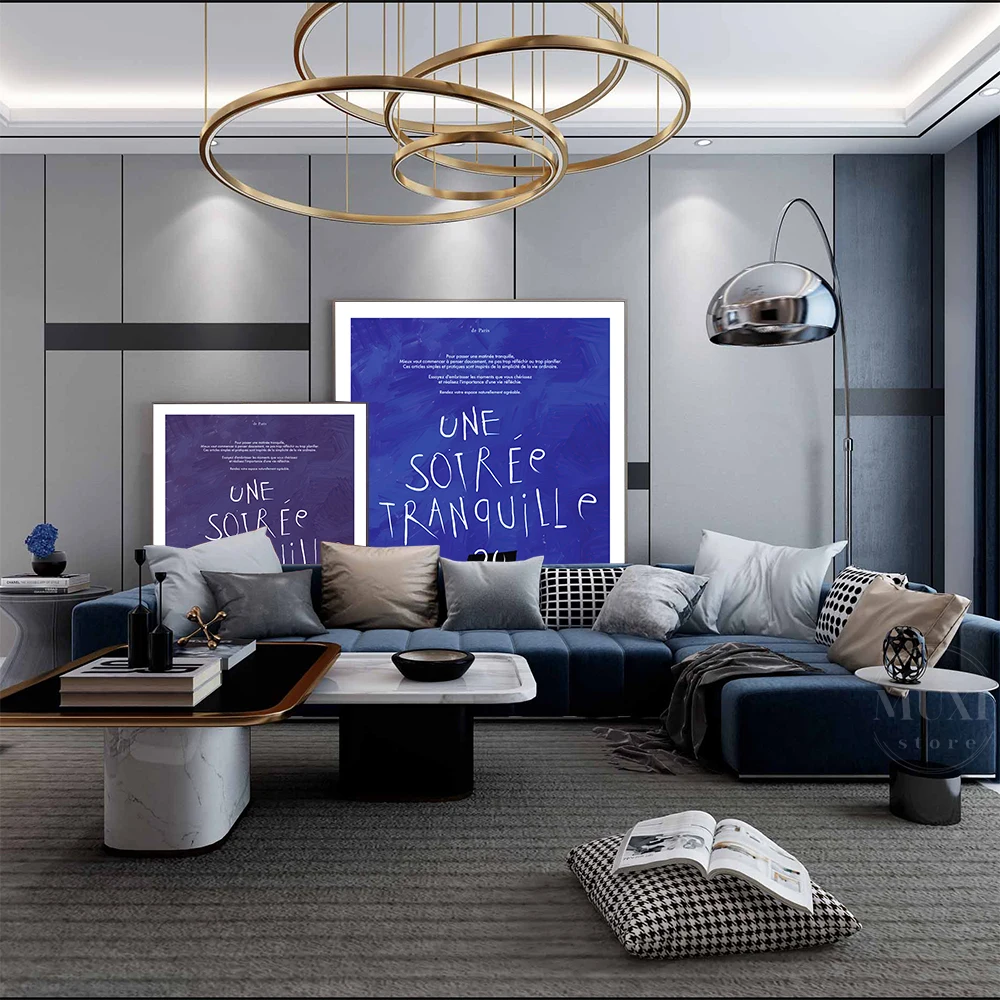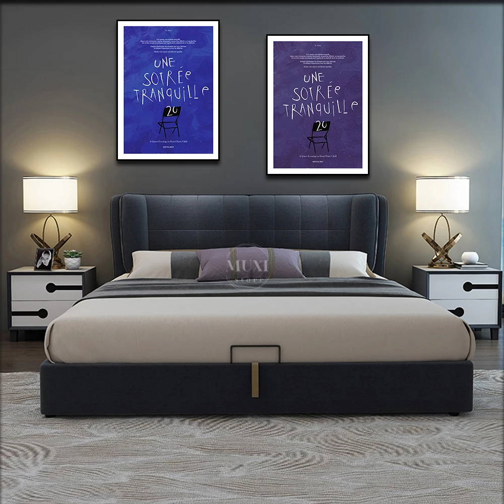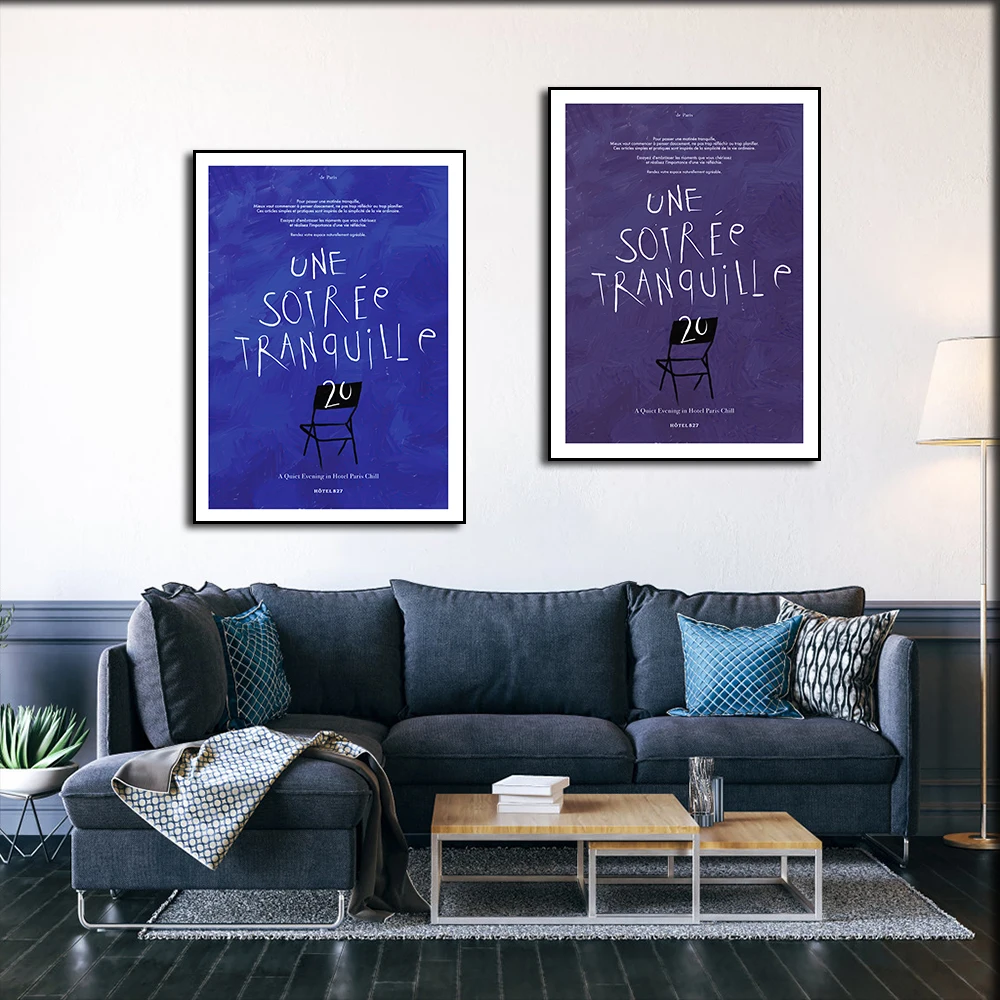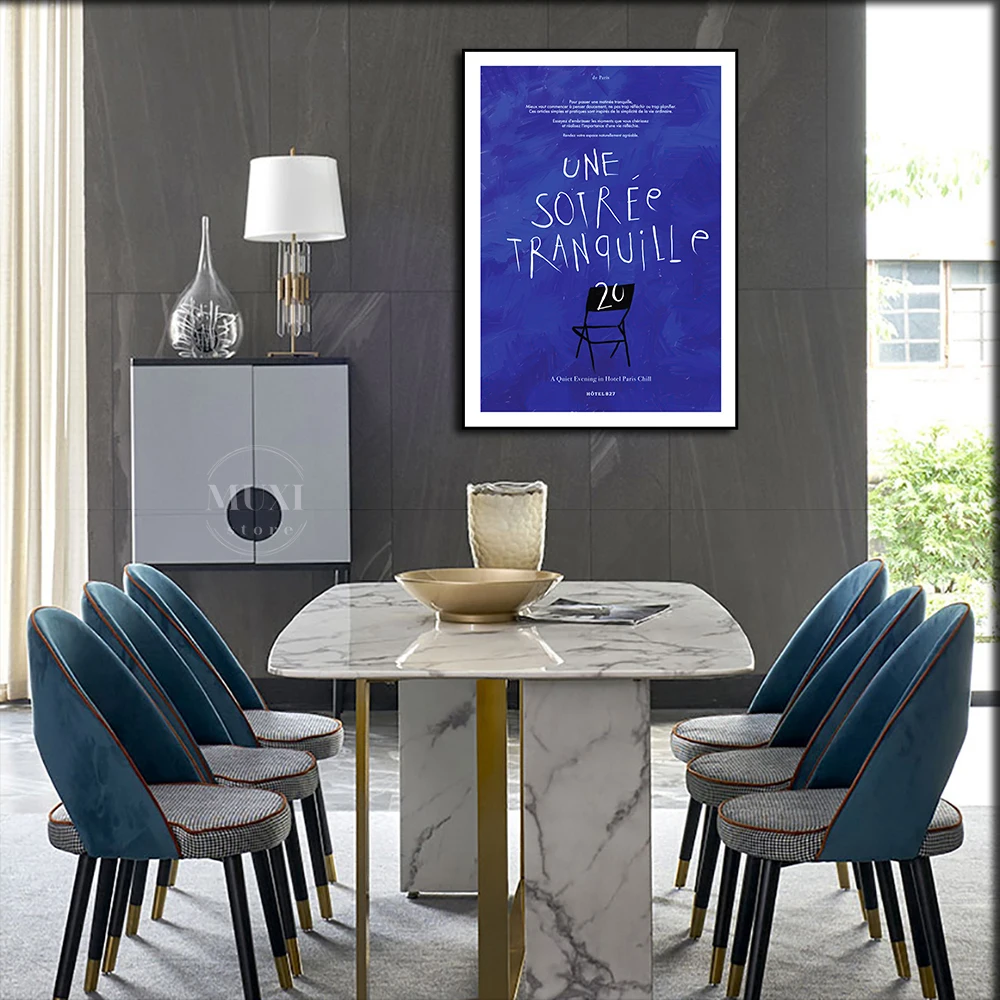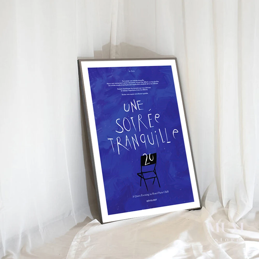 Тихая ночь, ограниченный по Парижу французский синий ретро романтический нишевой плакат в скандинавском стиле, Картина на холсте, настенное искусство, украшение для дома