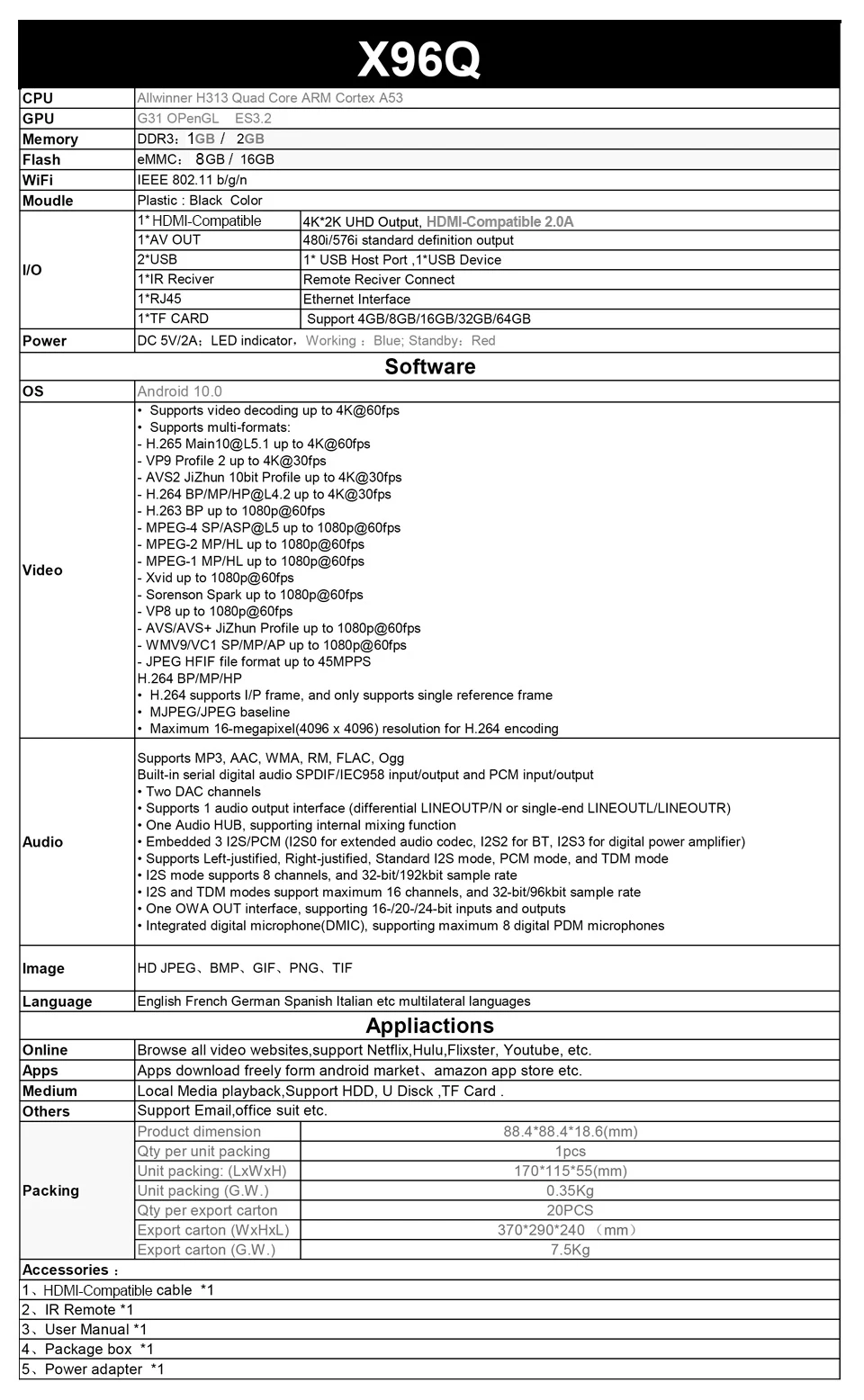 ТВ-приставка x96q, Android 10,0, 1 + 8216 ГБ, Allwinner H313