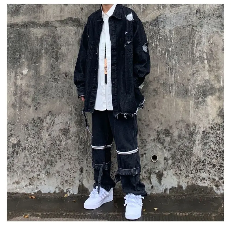 Джинсы с широкими штанинами мужские, прямые свободные брюки с больш...