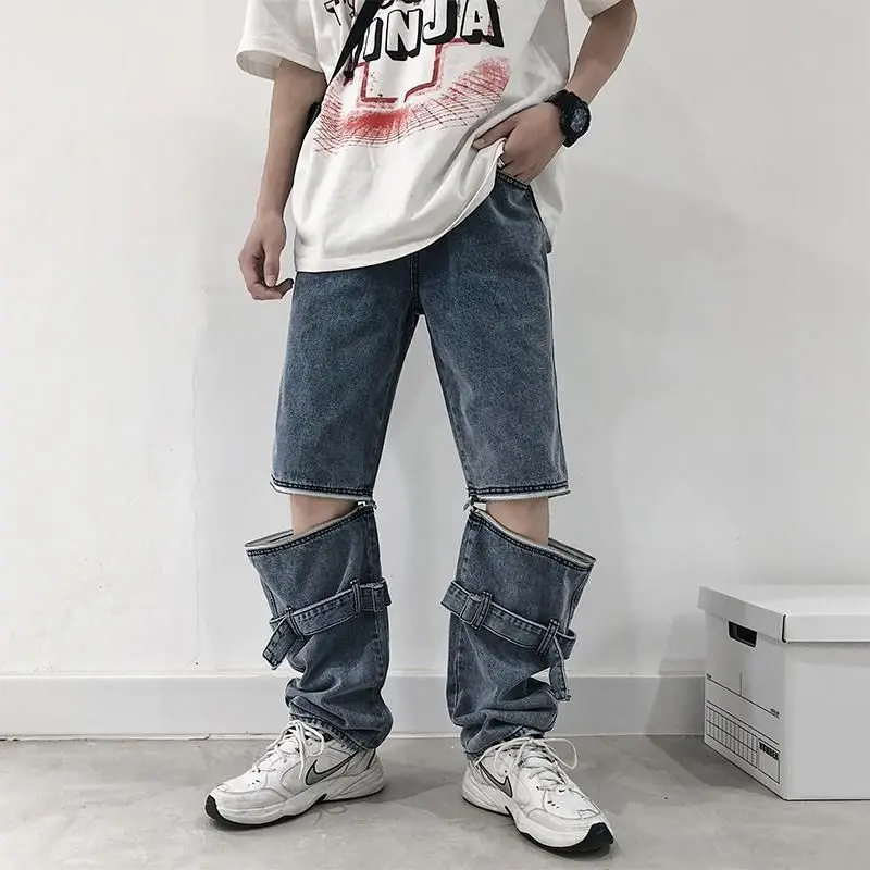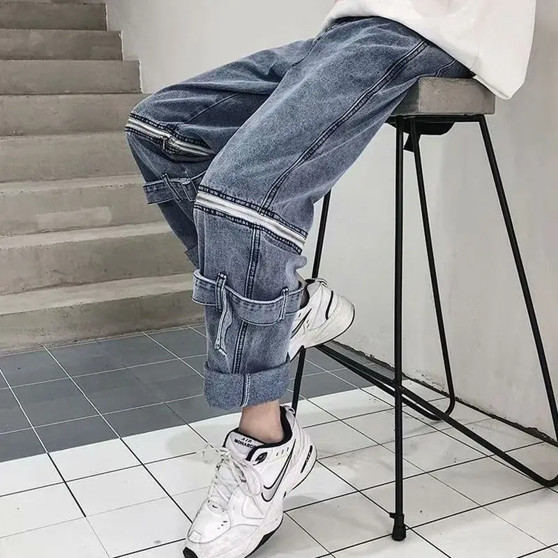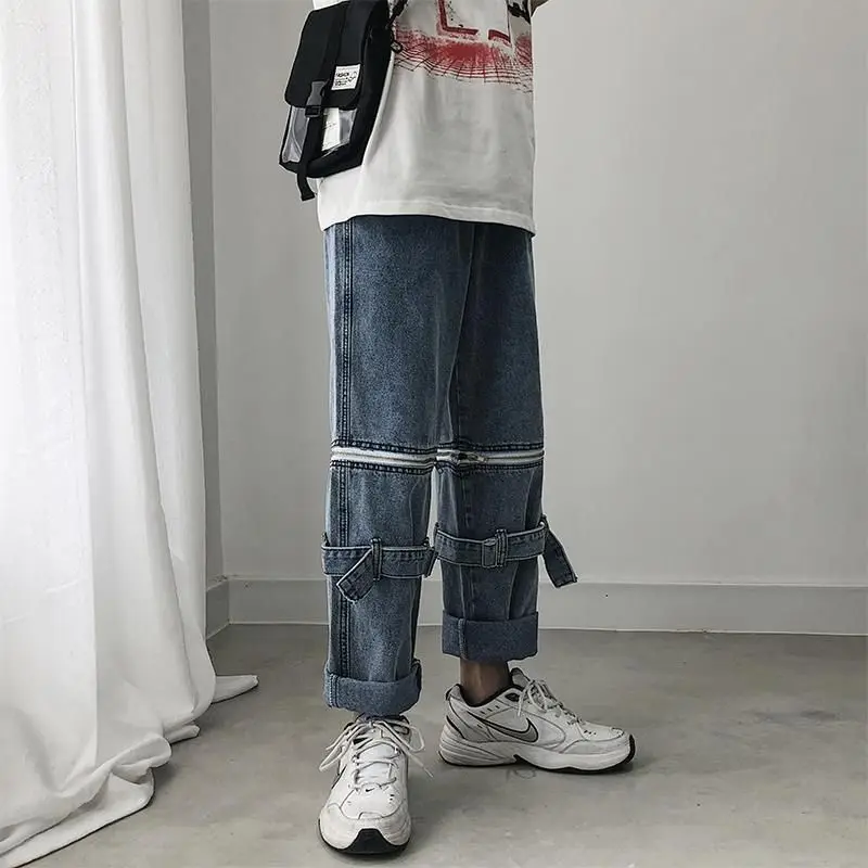 Джинсы-мешковатые для мужчин и женщин, Модные свободные однотонные прямые штаны в Корейском стиле, на молнии, со съемной завышенной талией, в стиле ретро, парные