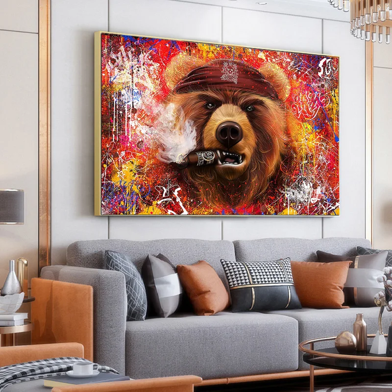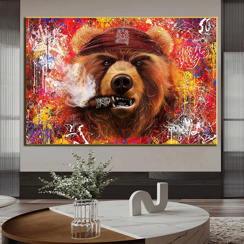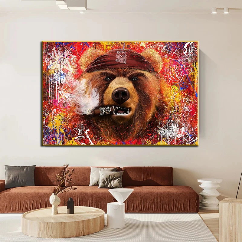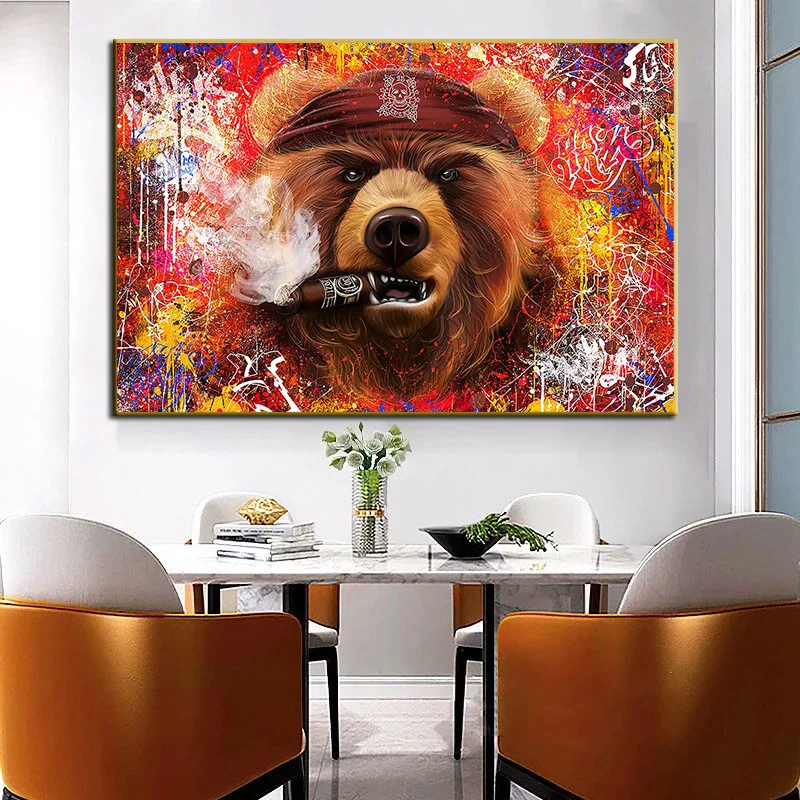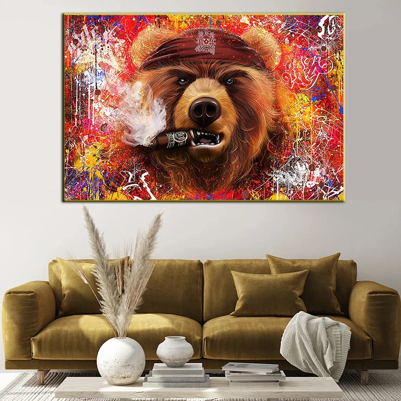Бандитский Медведь Печать холст медведь настенное искусство Улица граффити искусство подарок плакат животное холст плакат медведь с сигарой украшение картина